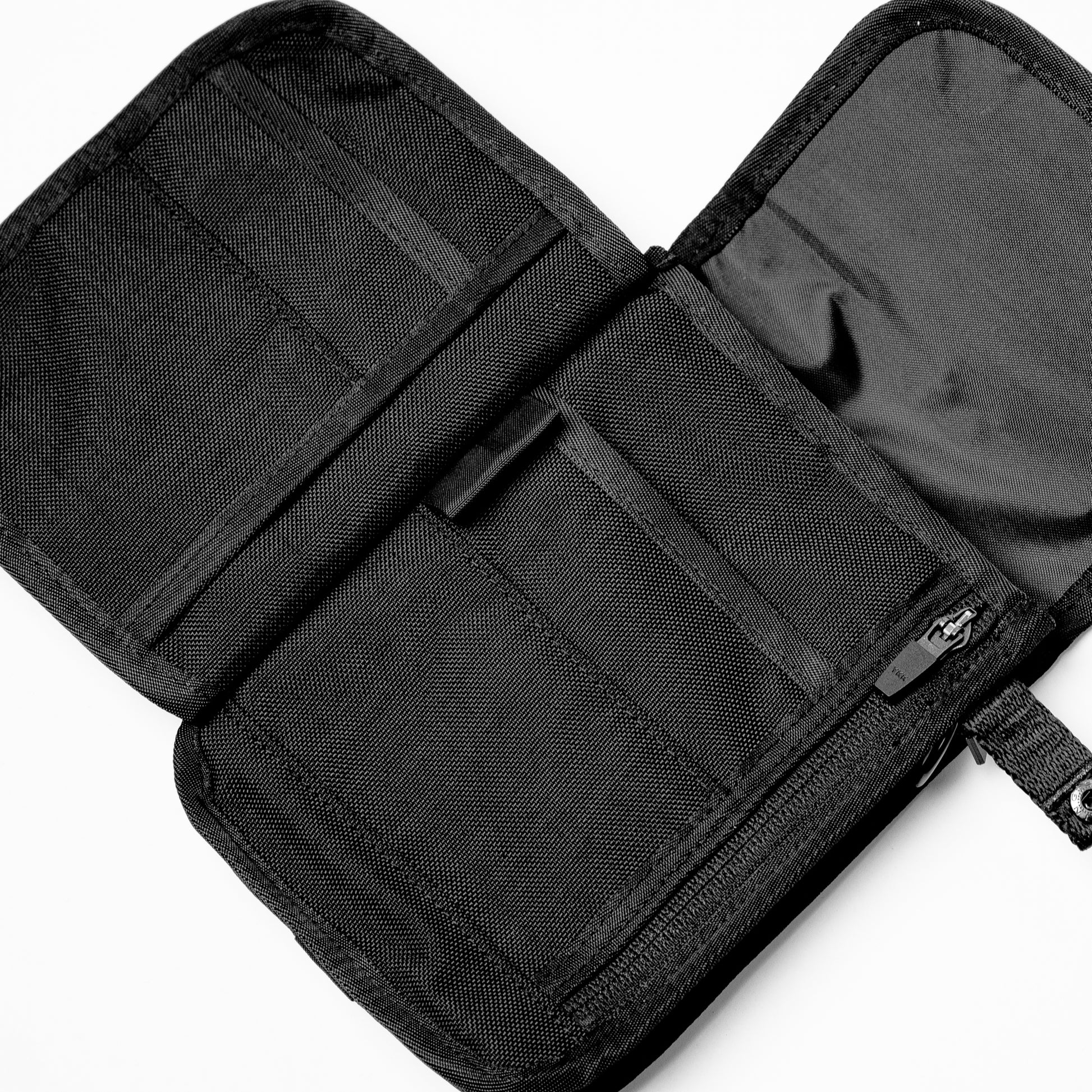- 可展開收納系統:2個魔鬼氈卡片槽、2個深卡片收納袋、1個拉鍊袋、1個快取口袋、1個筆插
