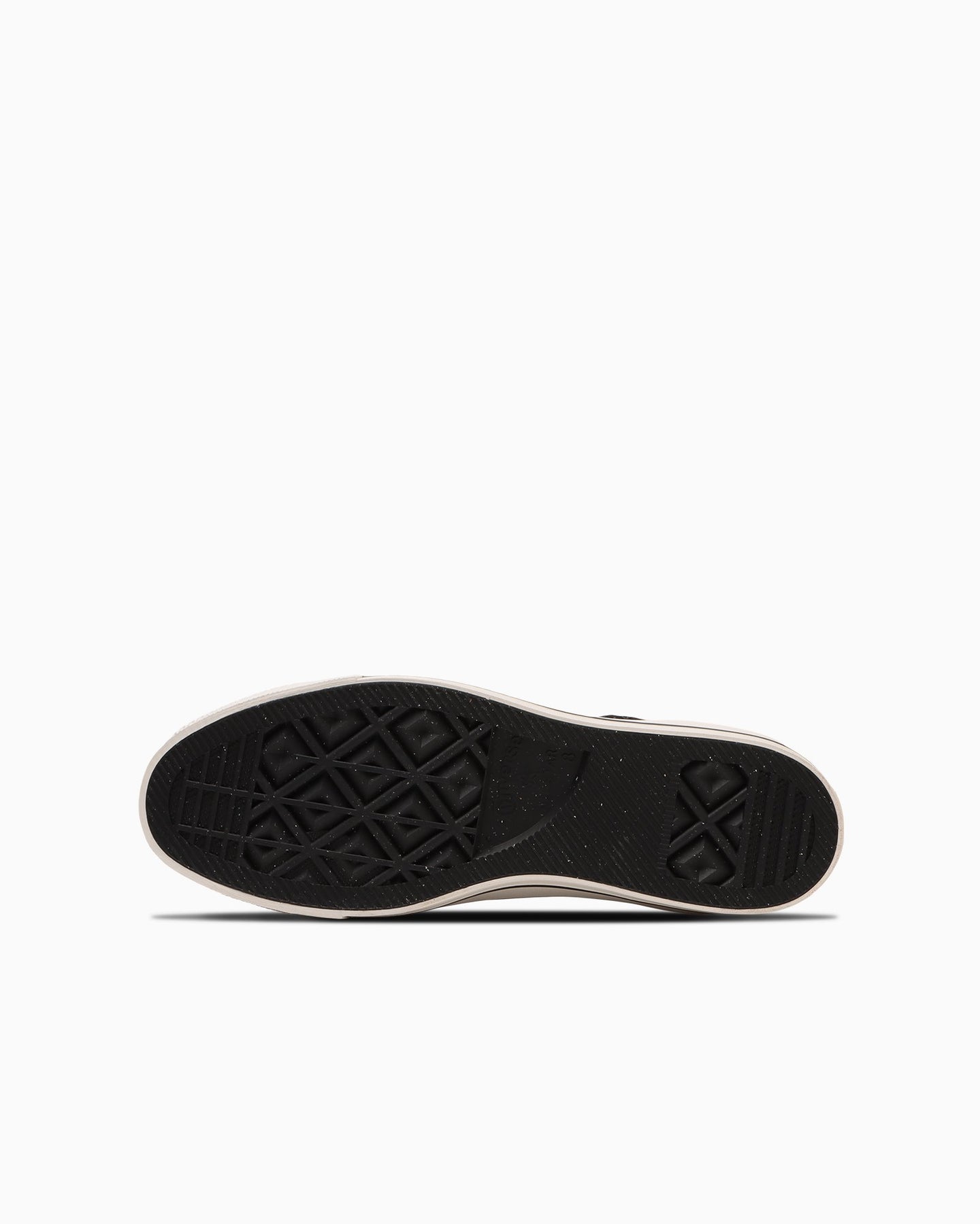 採用回收材質延續 Converse 對環境友善的承諾,外側配有實用拉鍊設計,讓穿脫更加輕鬆,全黑低調設計,打造極簡美學,鞋帶孔與拉鍊皆選用與鞋面相同的全黑色調處理,呈現簡約俐落且更具一致性的設計感。