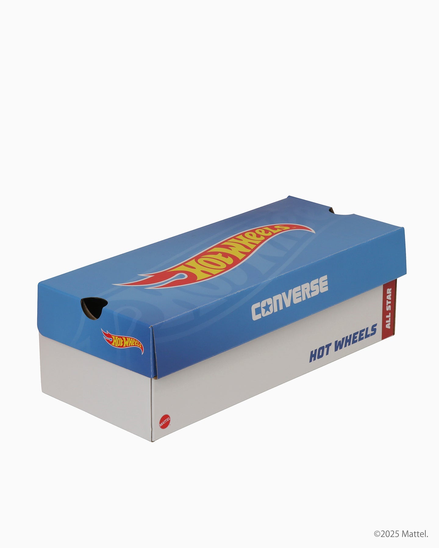 這款聯名鞋款是與全球廣受喜愛的美國玩具車品牌 Hot Wheels™ 合作推出的限定款,靈感來自 Hot Wheels™ 的火焰標誌,在鞋子兩側分別以刺繡呈現  Hot Wheels™ 標誌與 Hot Wheels™ 風格設計的 Converse 圖案,打造出獨特的限定款式,此外鞋舌上有Hot Wheels™ 品牌刺繡,另外有特別版原創鞋盒,提升收藏價值。