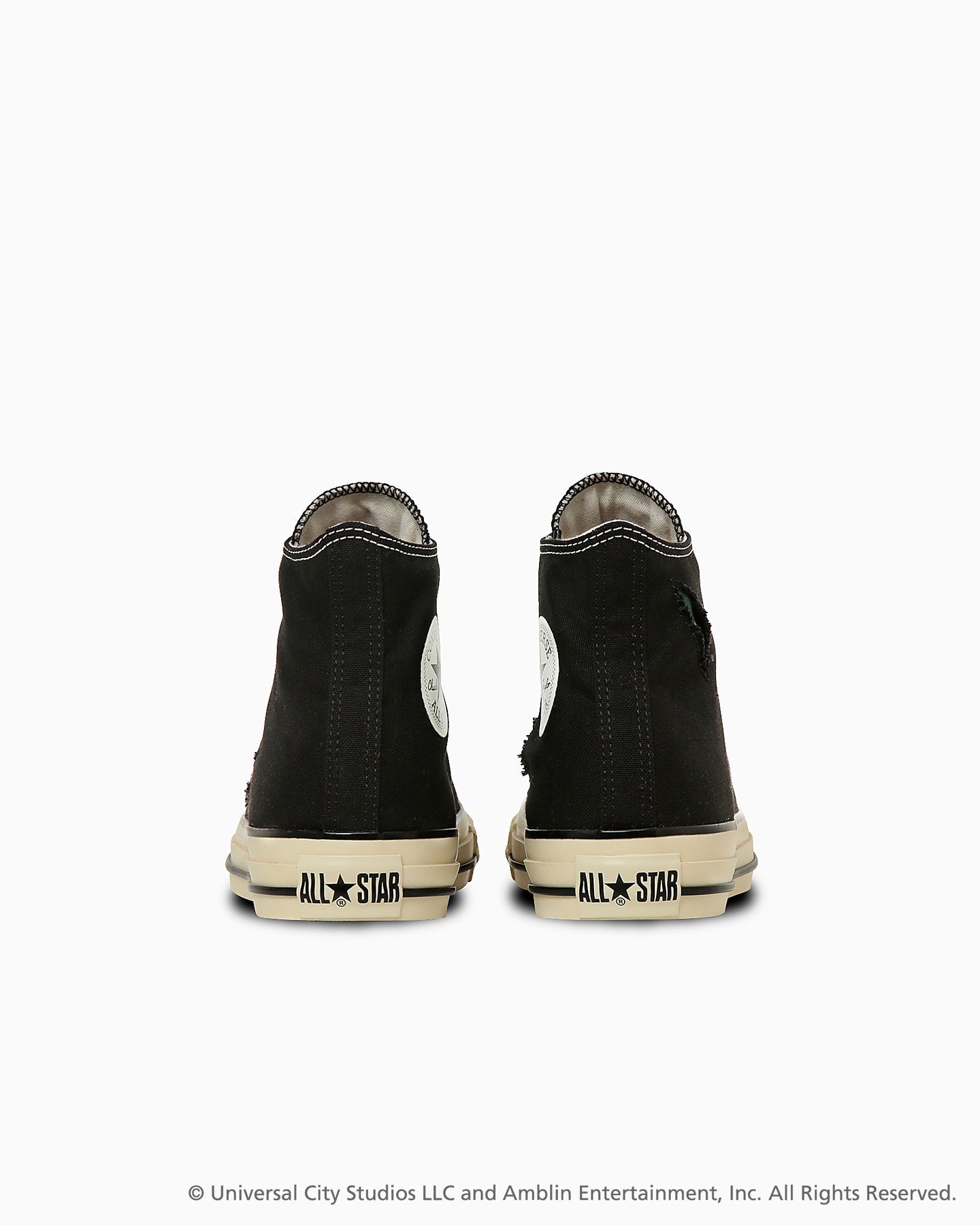 All Star Aged 系列與 1993 年上映、享譽全球的經典電影侏羅紀公園的聯名款式,以表現出彷彿在探險途中遭遇恐龍襲擊的氛圍為設計靈感,透過切割與改造鞋身第一層黑色帆布材質,帶來獨特的趣味,左腳外側鞋身以三道平行的破損加工,模擬恐龍爪痕般的效果,成為設計亮點。