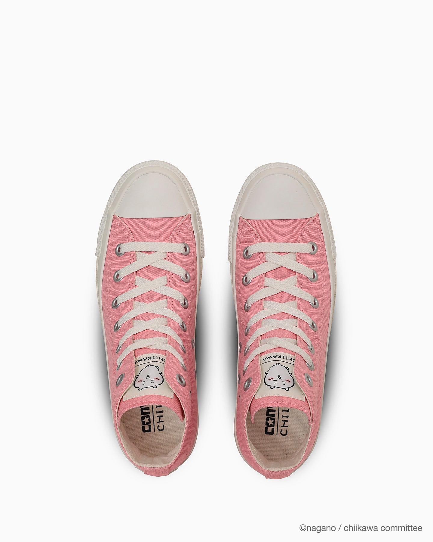 CONVERSE ALL STAR 與 吉伊卡哇 ちいかわ 聯名推出的限定款式,鞋面採用了印有各角色代表顏色的帆布材質,具有獨特字體設計的ALL STAR經典標誌和腳後跟標籤,鞋舌上附有每個角色的標籤,內襯還有每個角色相關的物品圖案,另外附有此次聯名的限定設計鞋盒。顏色:粉色、藍色、米色、紫色