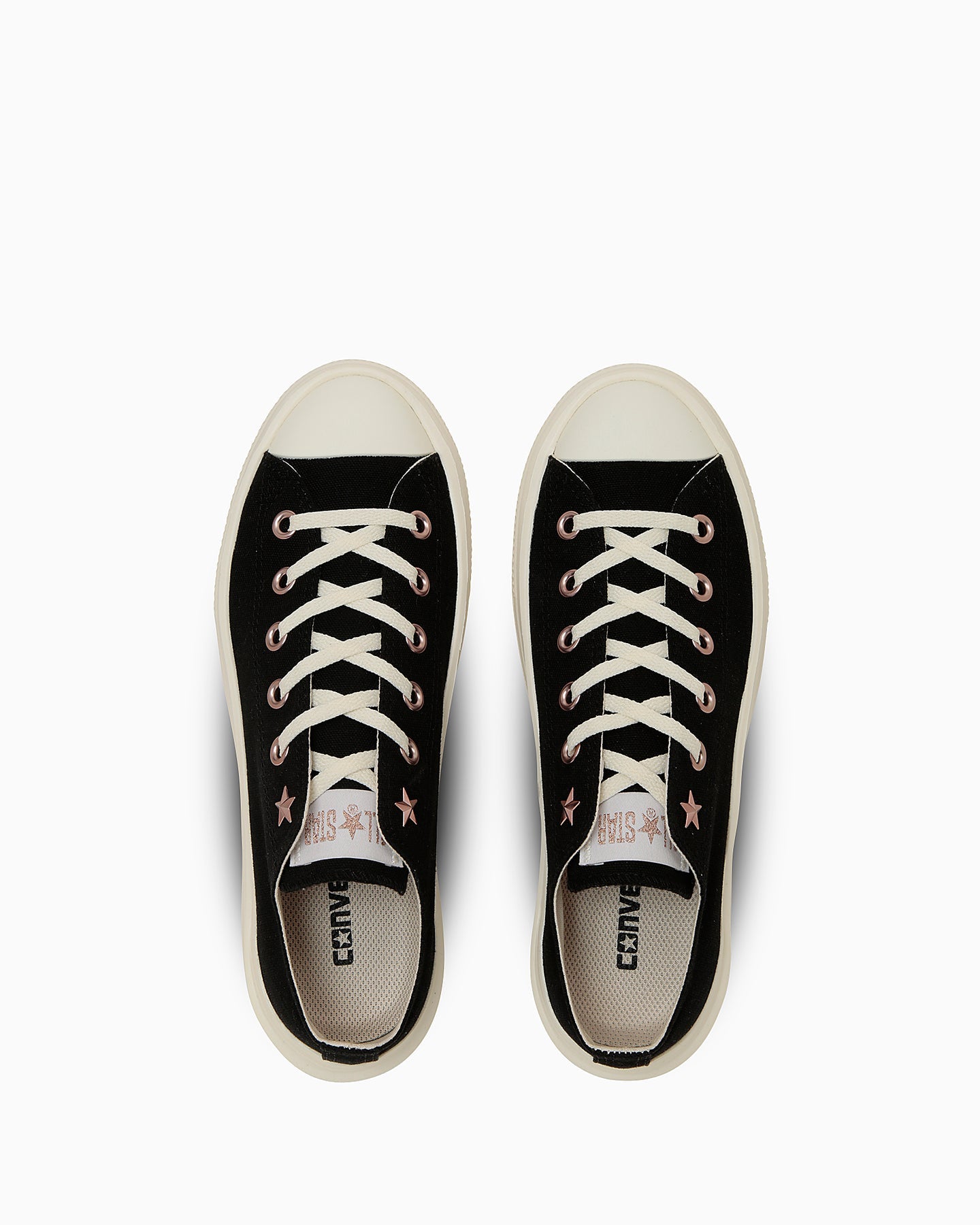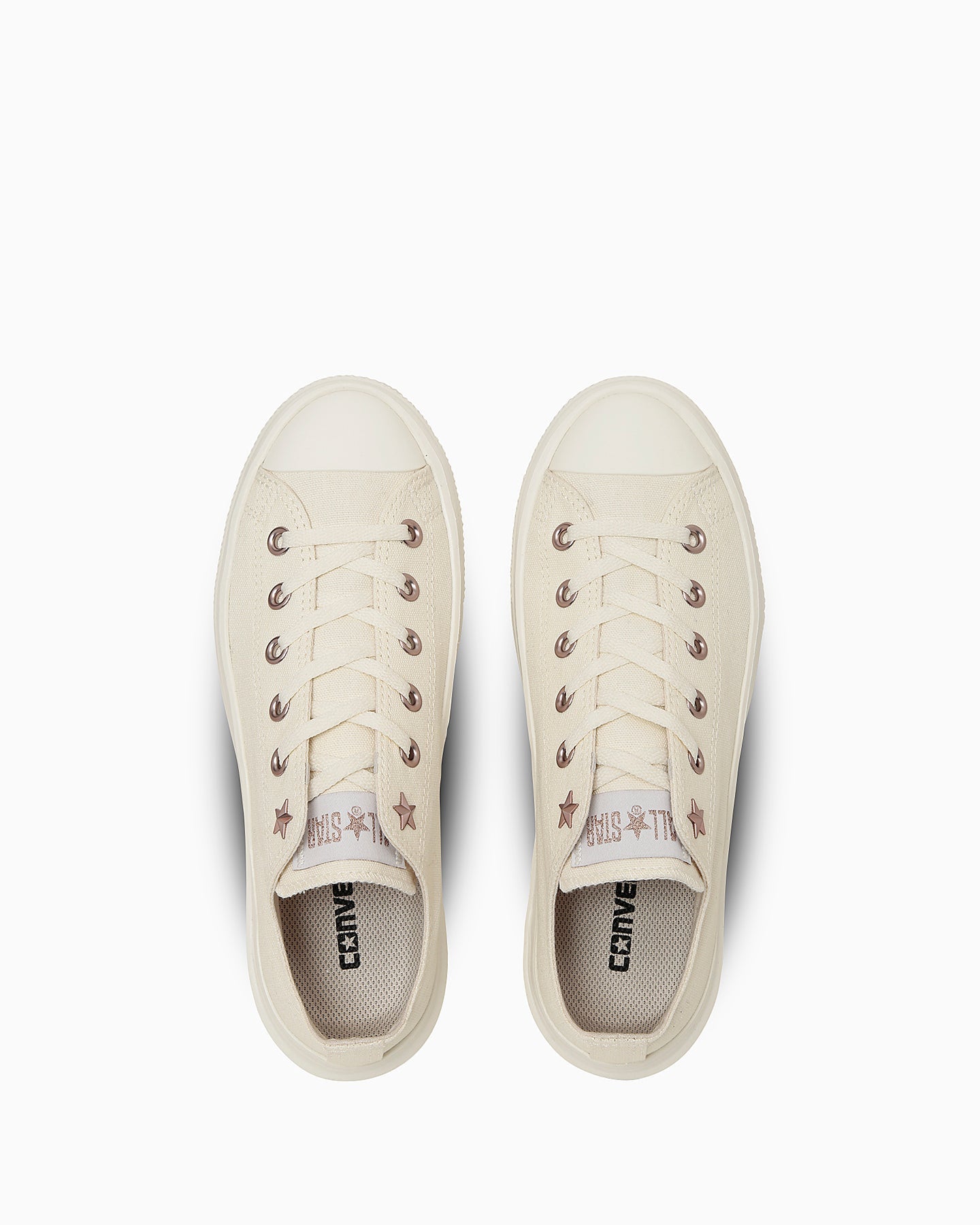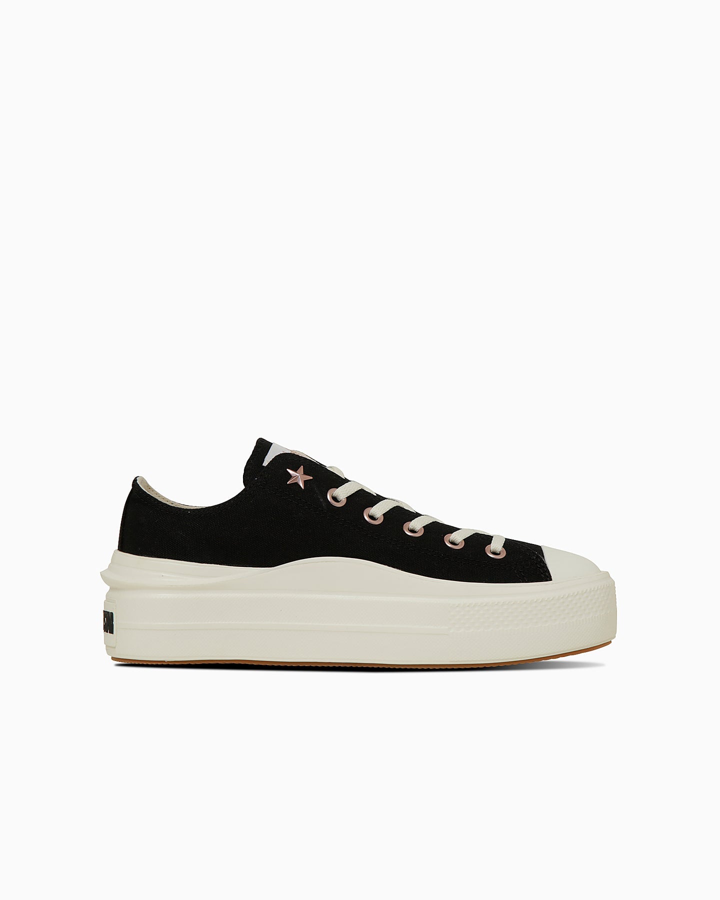 此款為All Star Light 的鞋底與圖樣改良款,採用時下流行的波浪厚底設計,展現出更具份量感與現代感的輪廓。鞋面以沉穩色調的帆布材質打造,搭配玫瑰金色的鞋孔與鞋舌標誌,增添一抹優雅氣息,鞋孔處點綴 Converse 經典星形鉚釘,為整體設計添上低調而獨特的亮點。鞋墊採用具備優異透氣性與緩震效果的杯型鞋墊,提供舒適穿著感。