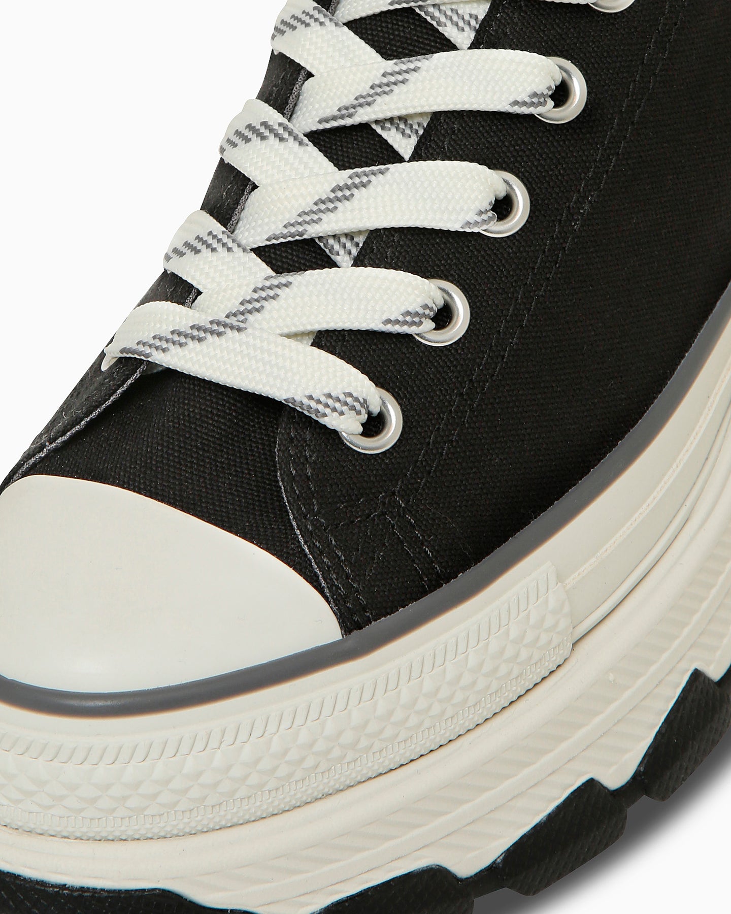 以 Converse 的經典 All Star 為基礎,結合擁有登山鞋般厚實份量感的鞋底,推出的限定的變化款式。帶有圖案的寬版鞋帶,內裡採用透氣網布,鞋底為防滑設計,強化抓地力,鞋墊則採用高密度聚氨酯泡棉與橡膠海綿材質,提供出色的緩衝效果。