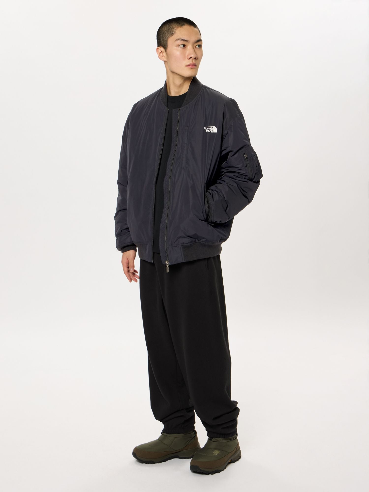 這款外套為採用具備保暖性的再生聚酯纖維填充物的MA-1款式保暖夾克。外層面料使用帶有適度光澤與挺度的聚酯纖維斜紋布,並經過防潑水加工,能夠應對一定程度的雨雪。填充物則採用獨家開發的保暖材料HEAT SEEKER,這種輕量且蓬鬆的填充物進一步提升了保暖性能。設計除了兼具戶外活動所需的功能性外,也非常適合日常穿搭。