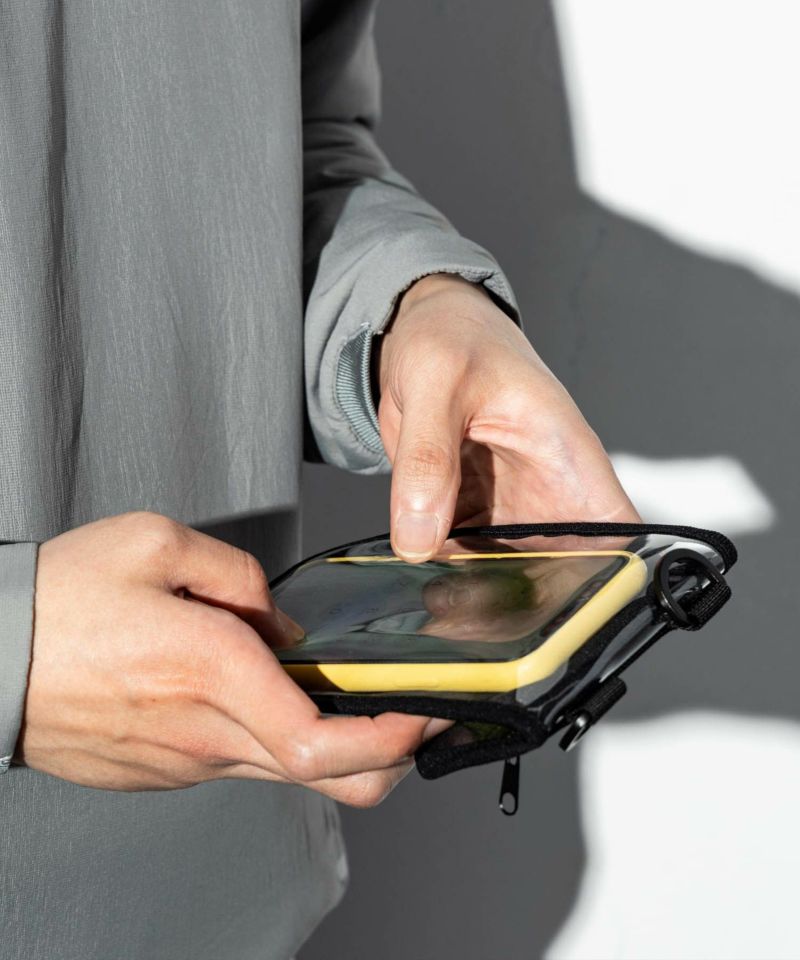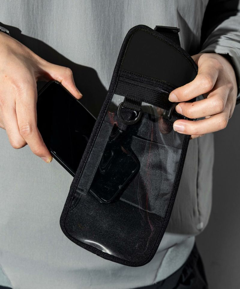 此款商品為延續ALK系列的理念,推出的 Extension mobile case 防潑水手機斜背包,這是一款方便實用的手機殼,能夠收納外出時所需的小物品(手機、鑰匙、卡片等),使用了透明的聚氨酯薄膜,可以在不取出手機的情況下操作手機,整體採用粘合材料製成,有效保護內部物品。