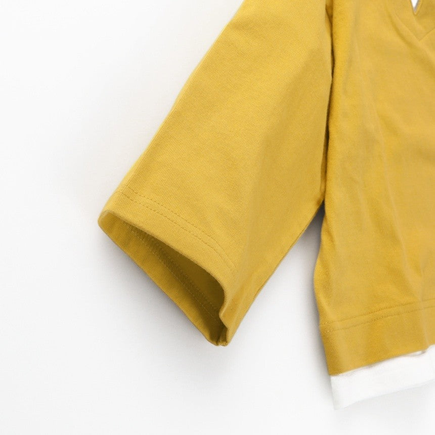 主要使用100% 純棉布料,具備良好的吸濕性與親膚感,穿著舒適,採用較粗的紗線編織,因此更加耐穿、不易變形。採用了鑰匙領設計,讓頸部線條看起來更加俐落,以假兩件層次設計呈現自然的拼接效果,胸前的小巧刺繡點綴,為整體造型增添亮點。百搭實穿,適合日常穿搭,也能搭配俐落的下身單品,營造簡約時尚的造型,非常適合作為外出服裝。
