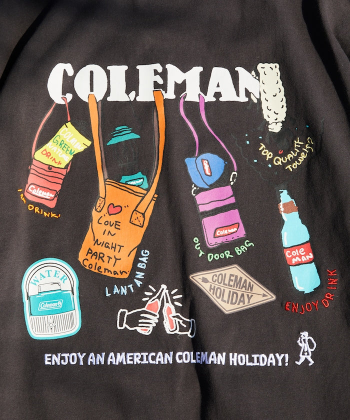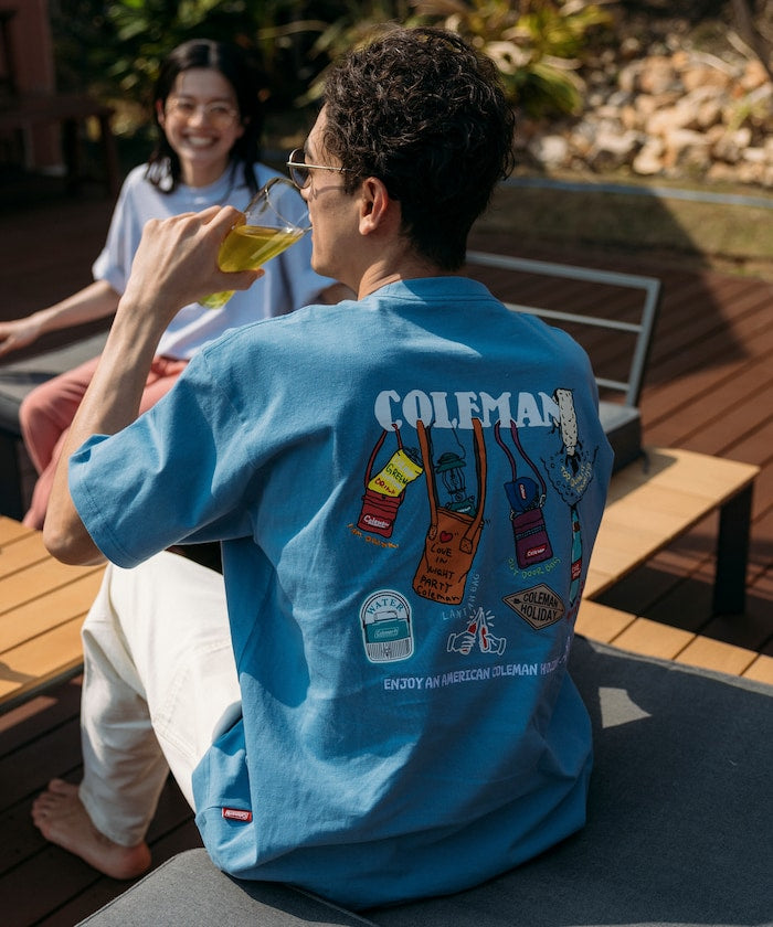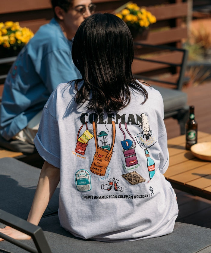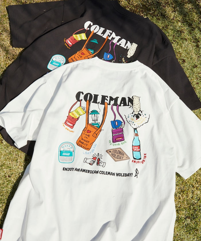 此款為 Coleman 與日本人氣插畫家 Matsui 推出的聯名限定單品,由插畫家 Matsui 親自繪製設計, 正面胸口為簡約小圖案設計,背面則印有鮮明活潑的插畫圖樣,採用實穿性高的標準版型,適合多種穿搭風格,男女皆可輕鬆穿搭。