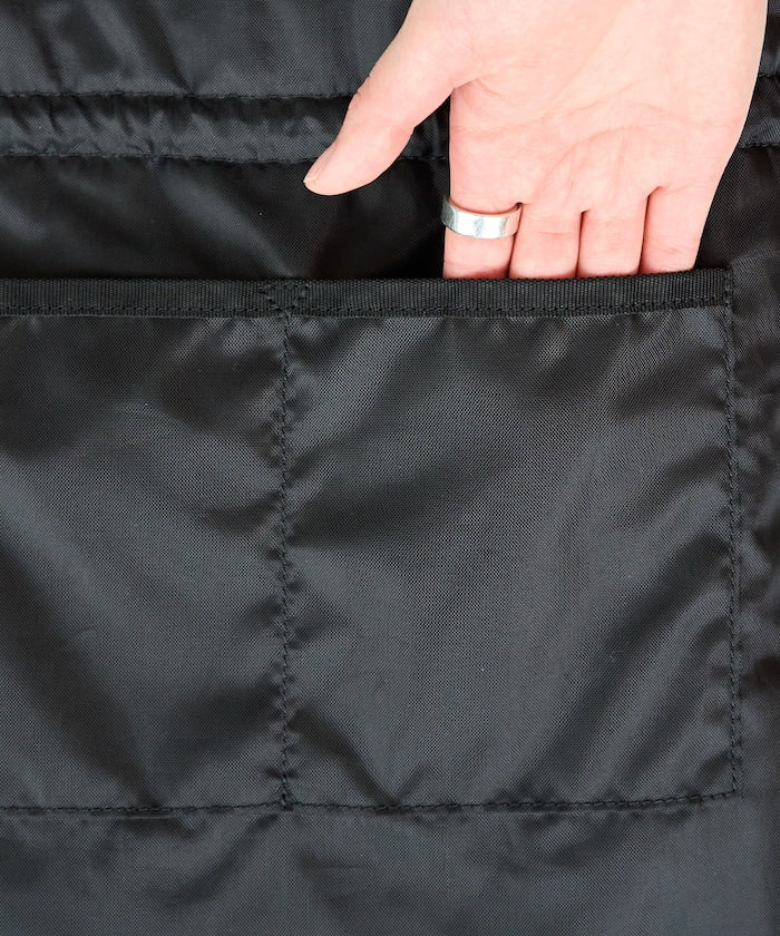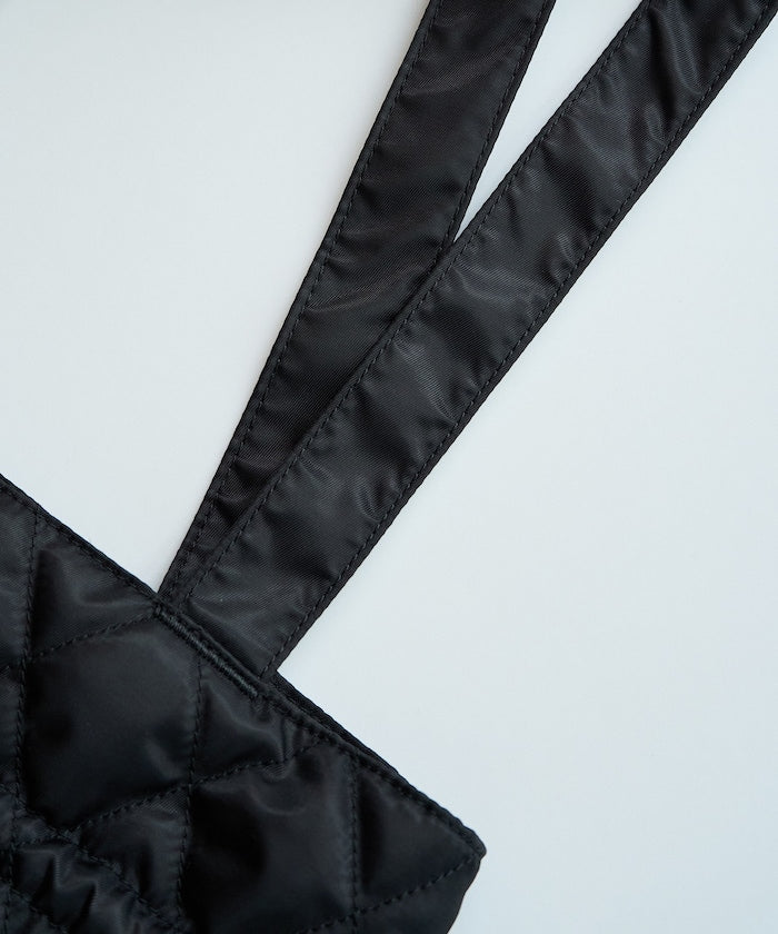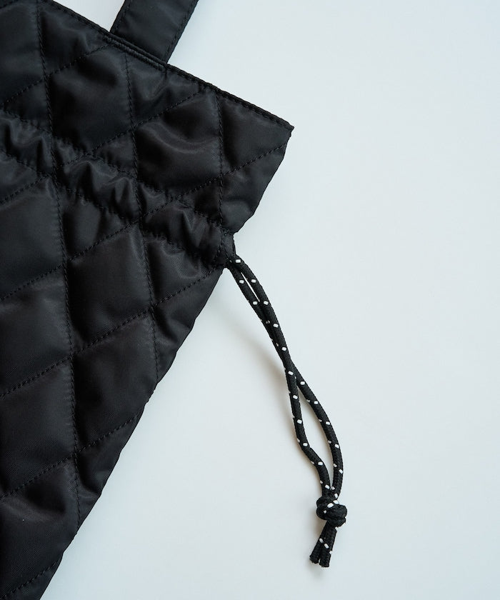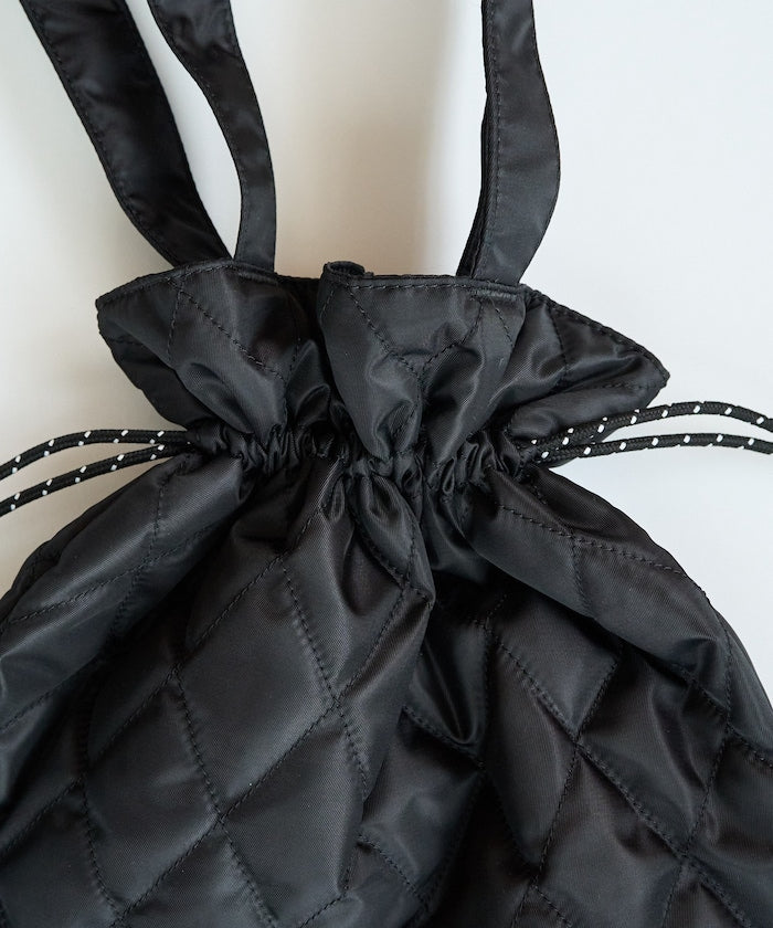 以簡約的束口袋造型為基礎,融入絎縫元素增添流行感,正面的品牌標誌成為低調卻搶眼的點綴,開口可展開也可作為迷你托特包使用,內附口袋,方便收納與整理小物,輕盈好攜帶,是一款適合日常使用的單品。