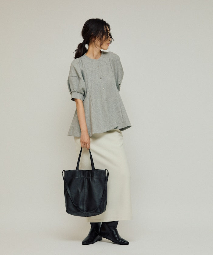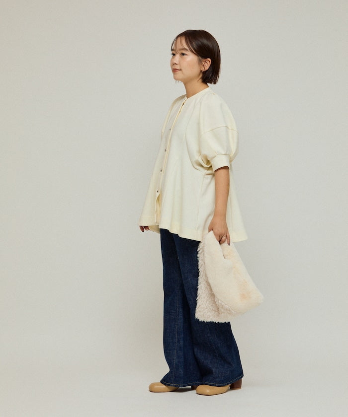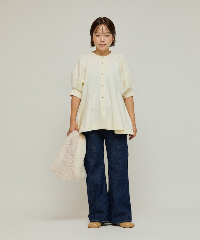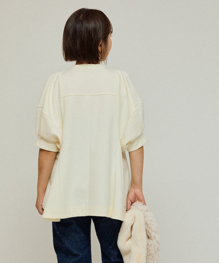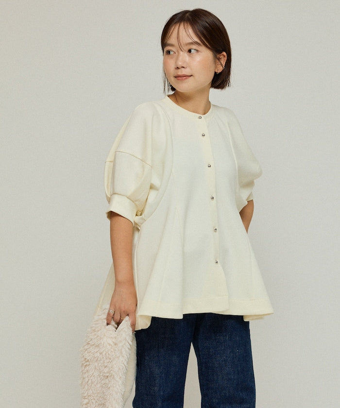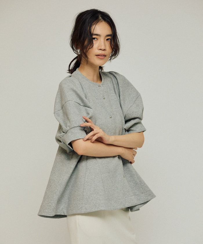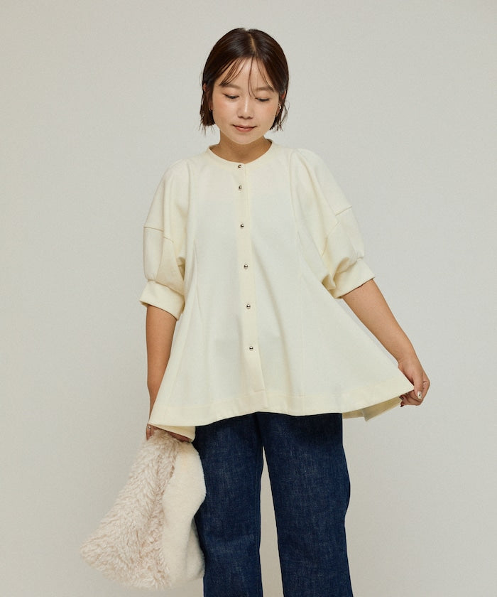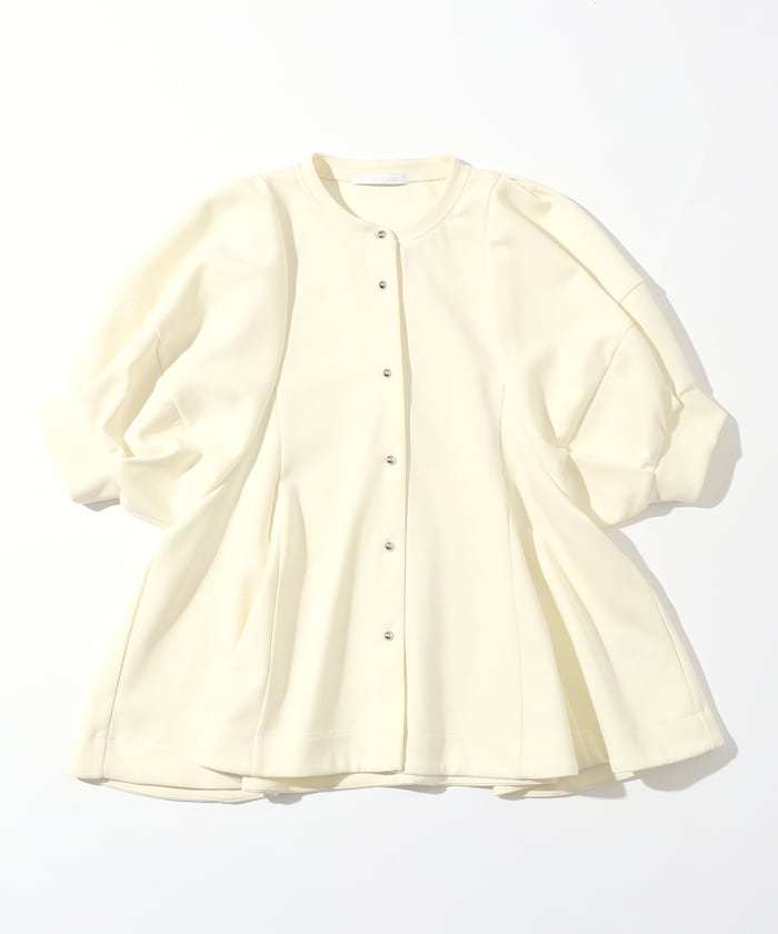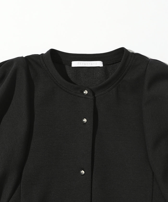 採用品牌自家開發的彈力丹波布料製作,兼具輕盈穿著感與適度挺度,保留棉料自然溫潤的質感,同時呈現俐落精緻的外觀,立體泡泡袖設計,突顯柔美輪廓,從腰部到下擺微微展開的 A 字剪裁,各角度都顯修飾,單穿即可成為造型焦點,正面金屬釦則增添細節亮點,休閒與優雅風格皆可駕馭,百搭度高。