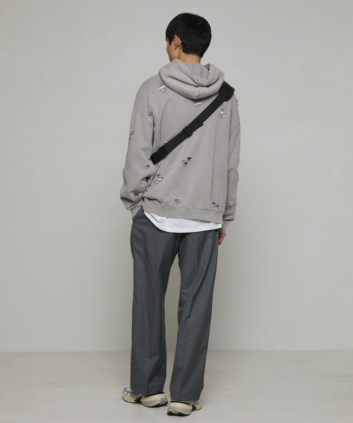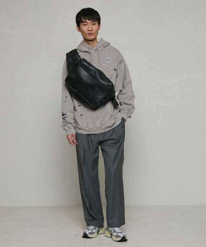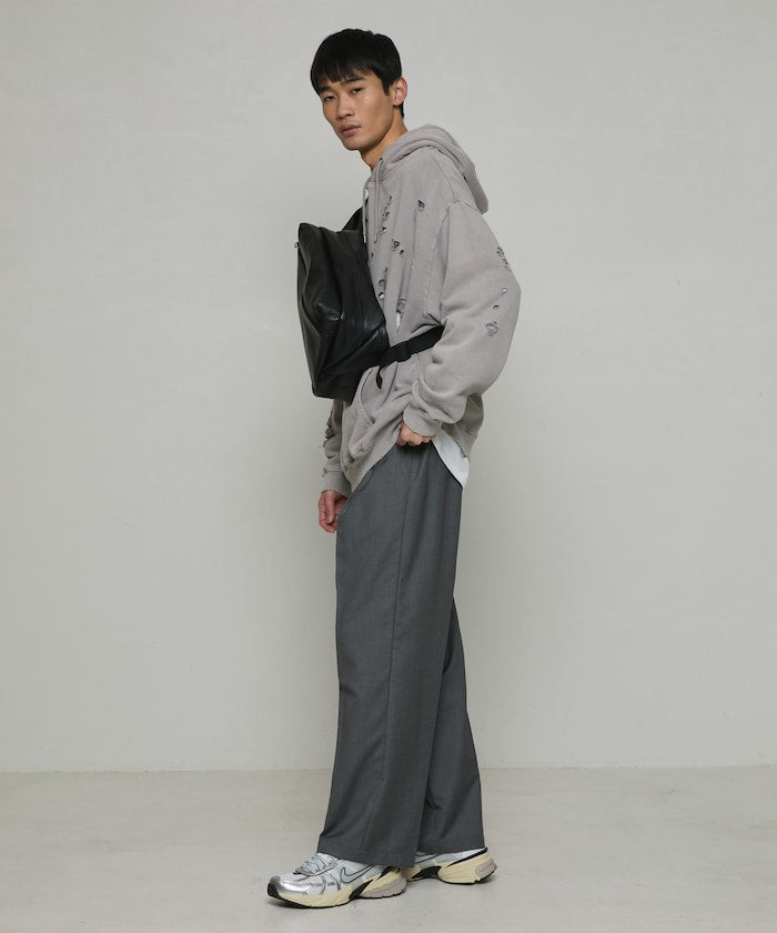 面料表面具有如羊毛般的高級質感,實際上為混紡面料,透氣舒適,適合全年著用,輕微錐形剪裁的寬直筒版型,穿著自然不拘束,中央壓線設計,即使是寬鬆輪廓也能呈現立體有型的視覺效果,適合多種穿搭風格的高機能百搭休閒長褲。