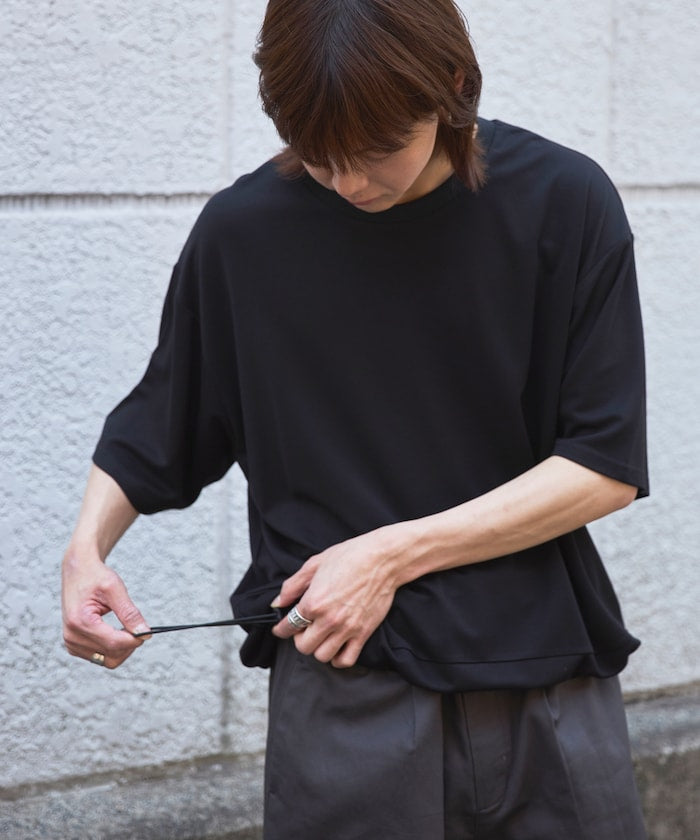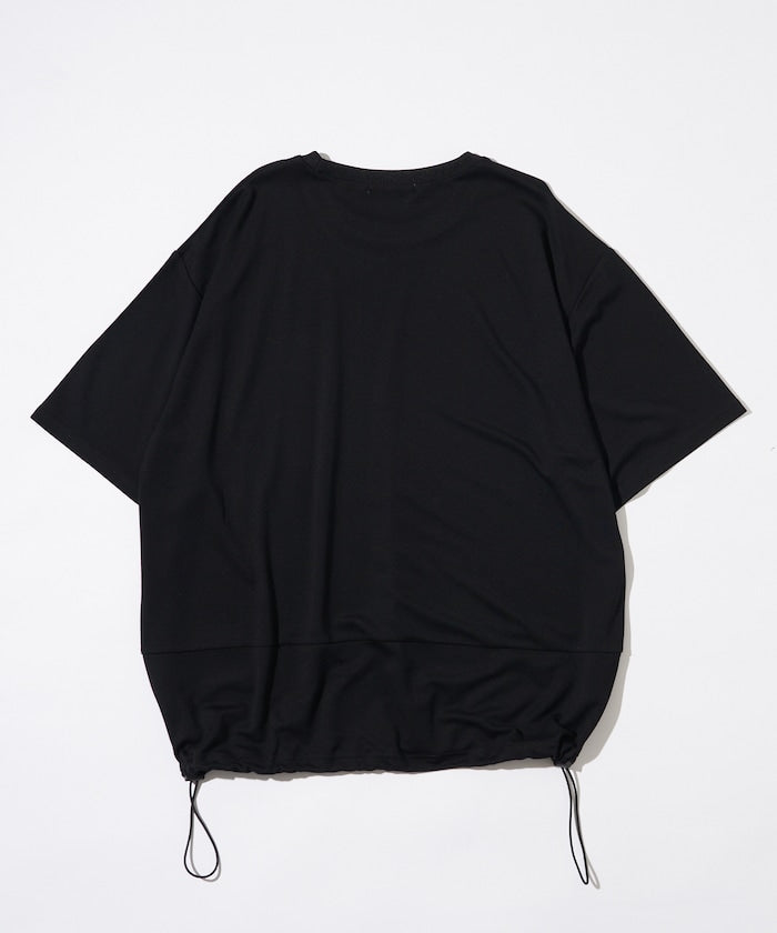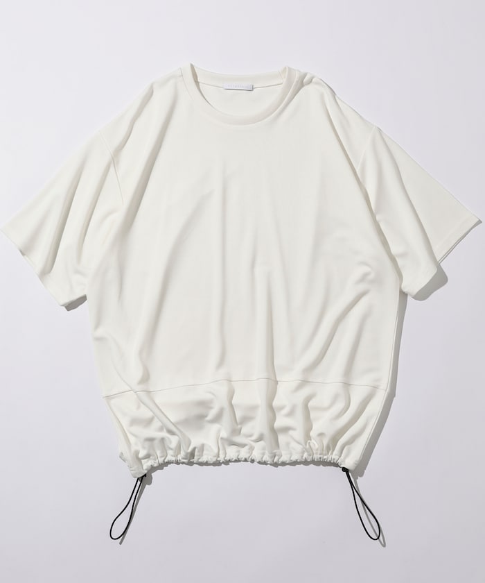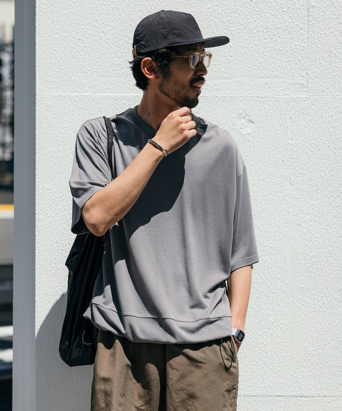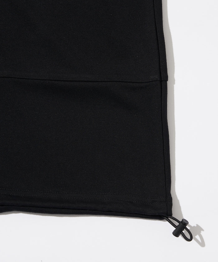 使用彈性良好的布料,具備速乾特性,炎熱夏季也能保持舒適乾爽,布料經過抗UV加工,有效阻擋陽光中的紫外線,可達到防曬效果,另外具備接觸涼感機能,與肌膚接觸時能感受到涼爽膚觸,採用輕鬆的寬鬆剪裁,下擺附有抽繩設計,可依需求變化整體輪廓造型。