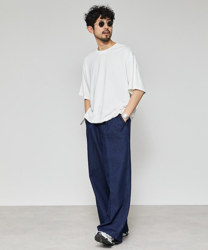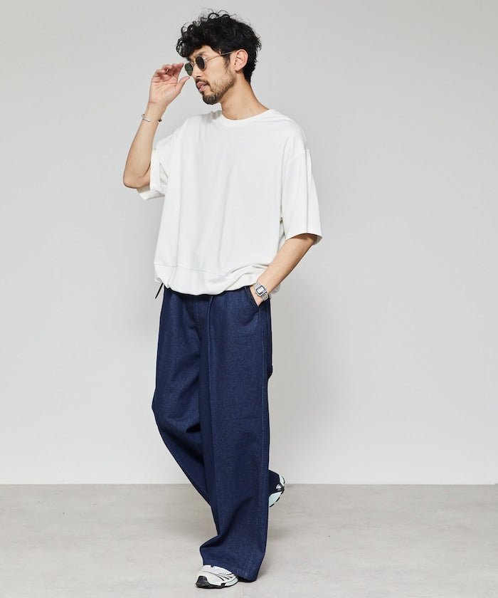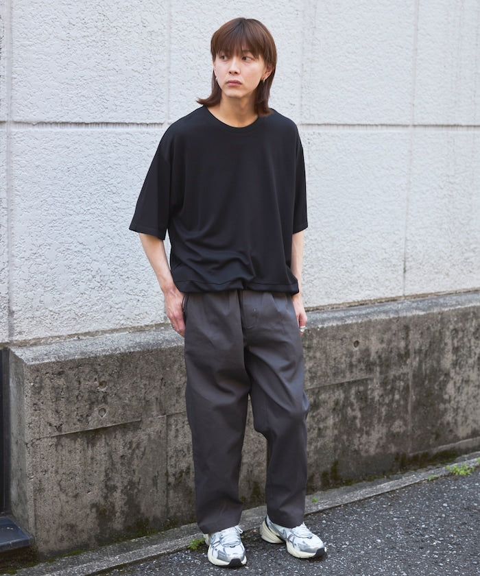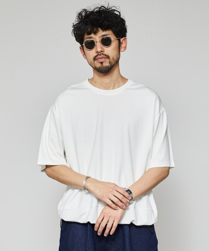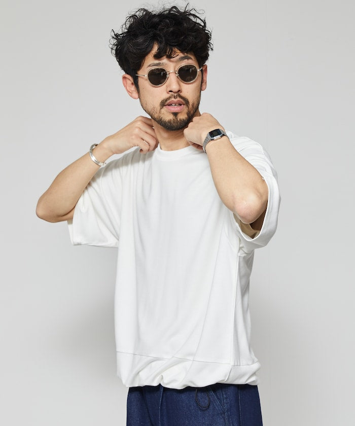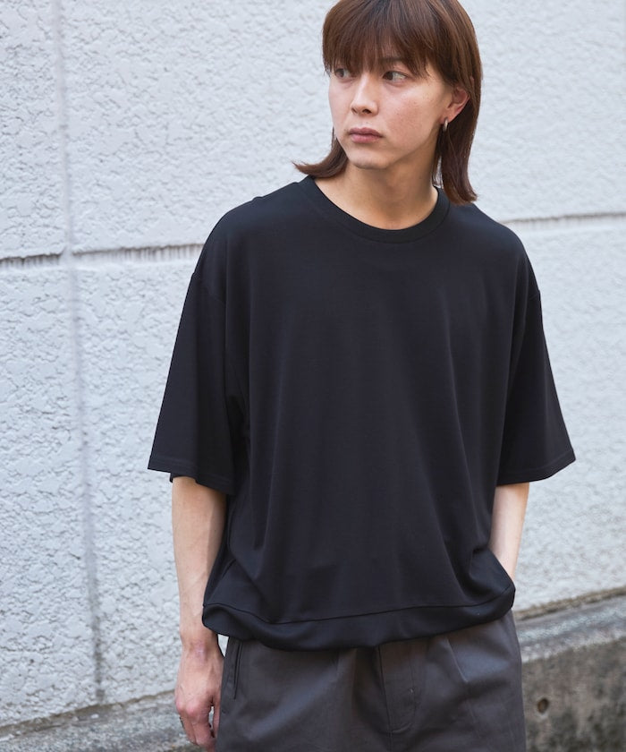 使用彈性良好的布料,具備速乾特性,炎熱夏季也能保持舒適乾爽,布料經過抗UV加工,有效阻擋陽光中的紫外線,可達到防曬效果,另外具備接觸涼感機能,與肌膚接觸時能感受到涼爽膚觸,採用輕鬆的寬鬆剪裁,下擺附有抽繩設計,可依需求變化整體輪廓造型。