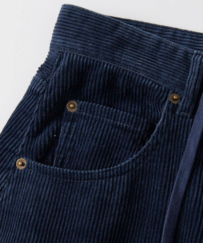 採用經過水洗處理的講究燈芯絨布料,質感自然耐穿,將繭型褲型結合燈芯絨布料,展現復古又摩登的氣息,側邊至褲腳採用包縫工藝,營造立體流暢的輪廓,鬆緊抽繩腰頭設計,穿脫方便、舒適自在。