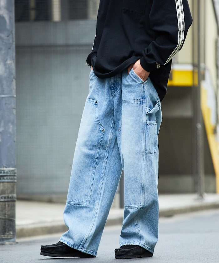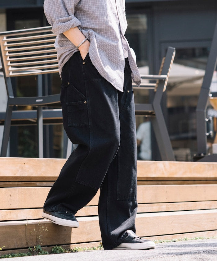 FREAK'S STORE 直筒寬版雙膝單寧牛仔褲