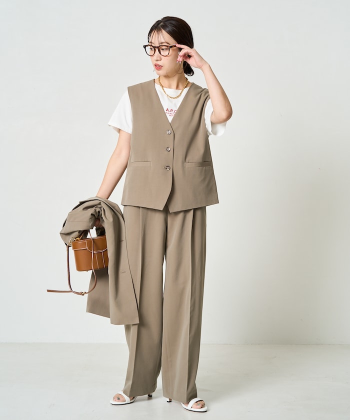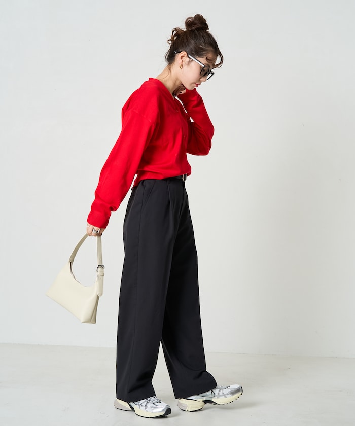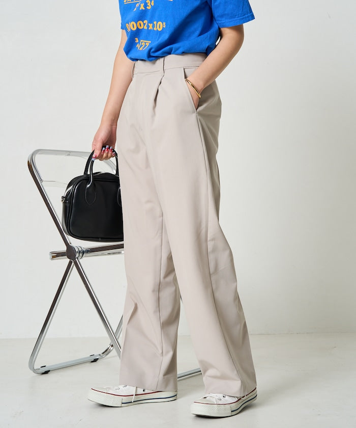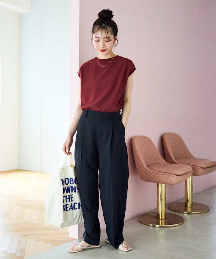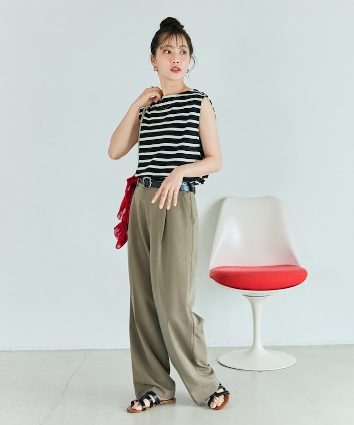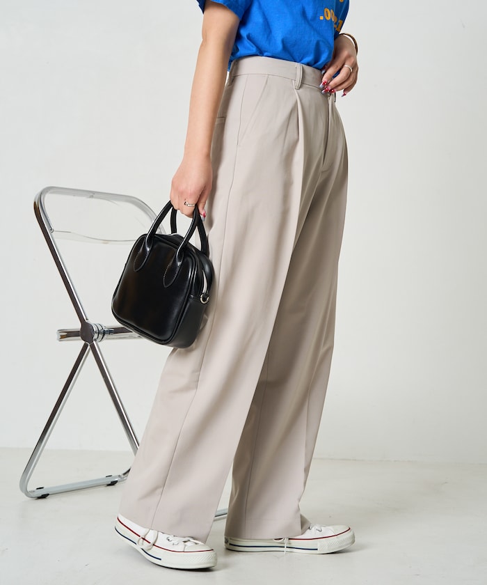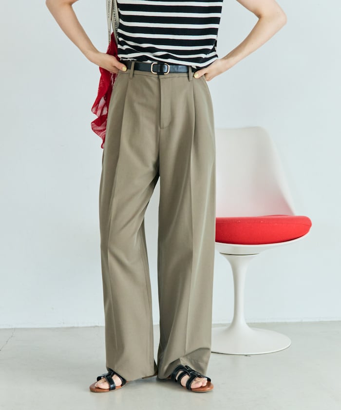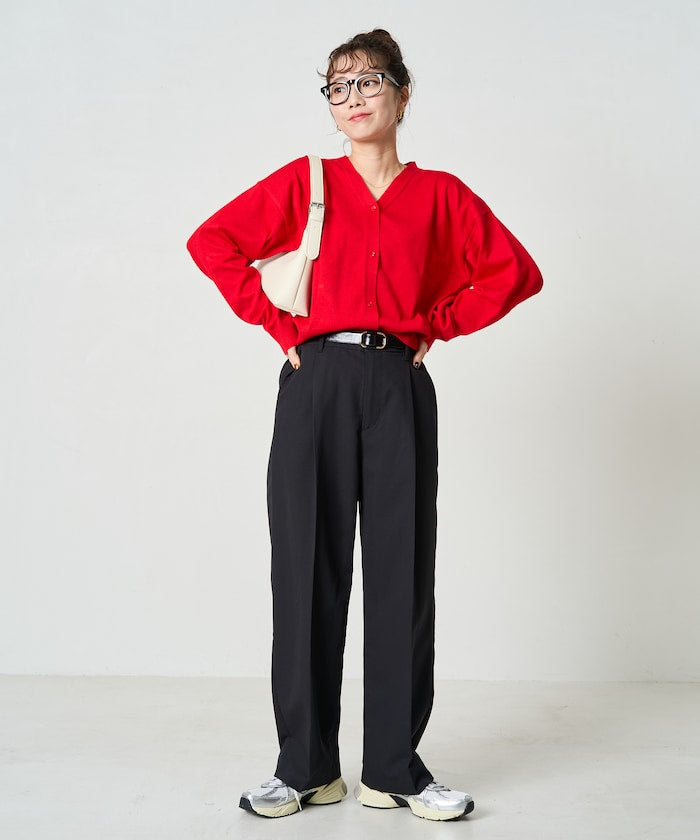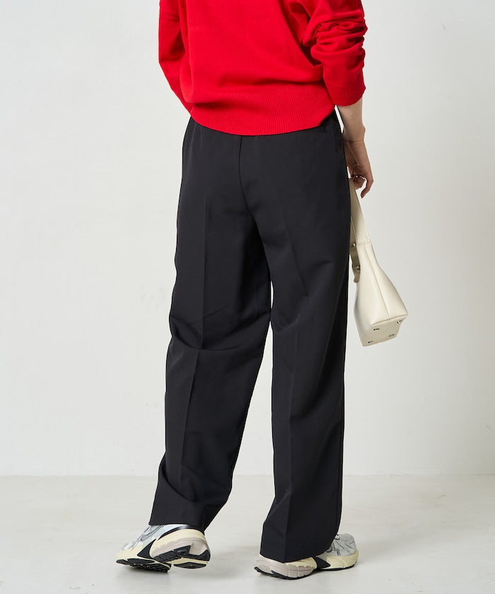 經典直筒剪裁,百搭不挑上衣,中央壓線設計,營造俐落修長感,褲頭有打褶設計,腰部更寬鬆、活動更自在,有彈性、觸感乾爽的布料,穿著舒適感滿分。