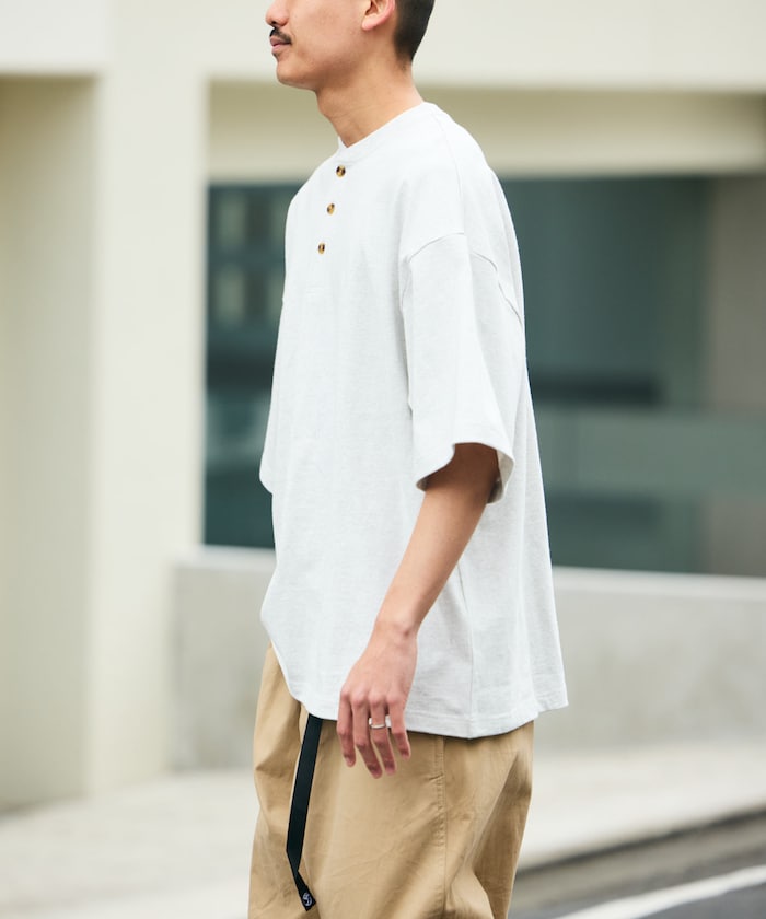 FREAK'S STORE 9oz 厚磅寬版亨利領短袖T恤上衣