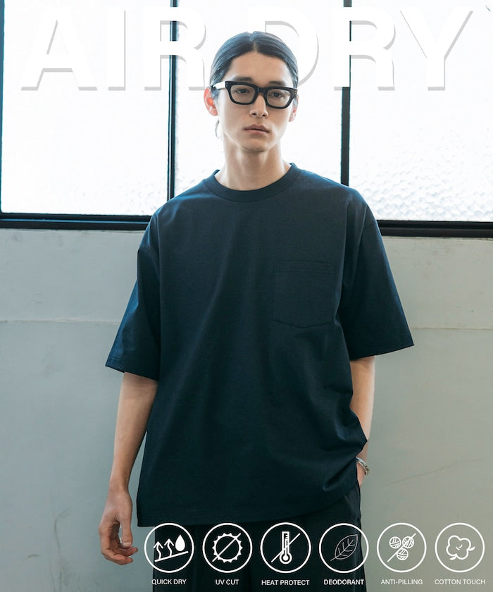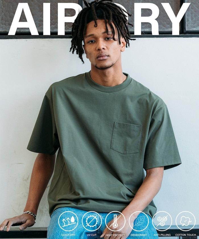 使用由 FREAK’S STORE 獨家開發的原創素材—7.7盎司的AIRDRY雙層針織布料,能讓夏季穿著更加清爽舒適的高機能材料,具備吸濕速乾、紫外線遮蔽率UPF50+、抗紫外線等多重機能,有效保護肌膚免受陽光傷害,內層使用特殊聚酯纖維,不僅展現出清爽俐落的外觀與扎實手感,同時保有輕盈的穿著體驗。版型方面配合具有硬挺感的布料,為寬鬆剪裁設計,即使大量出汗,也能充分通風,無論是酷暑戶外還是室內流汗場合,都是一件能輕鬆應對的高機能T恤。