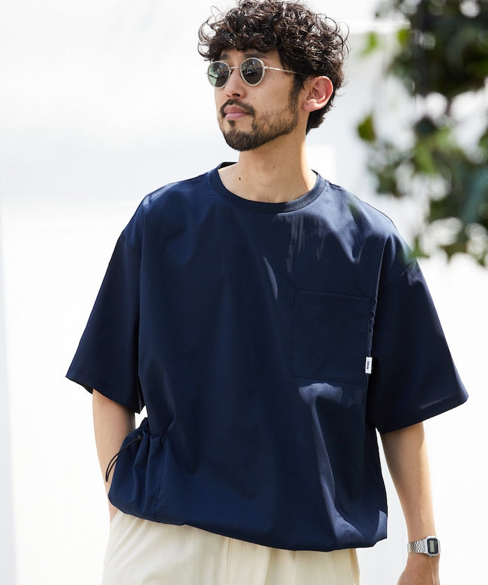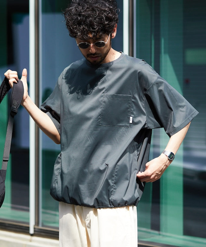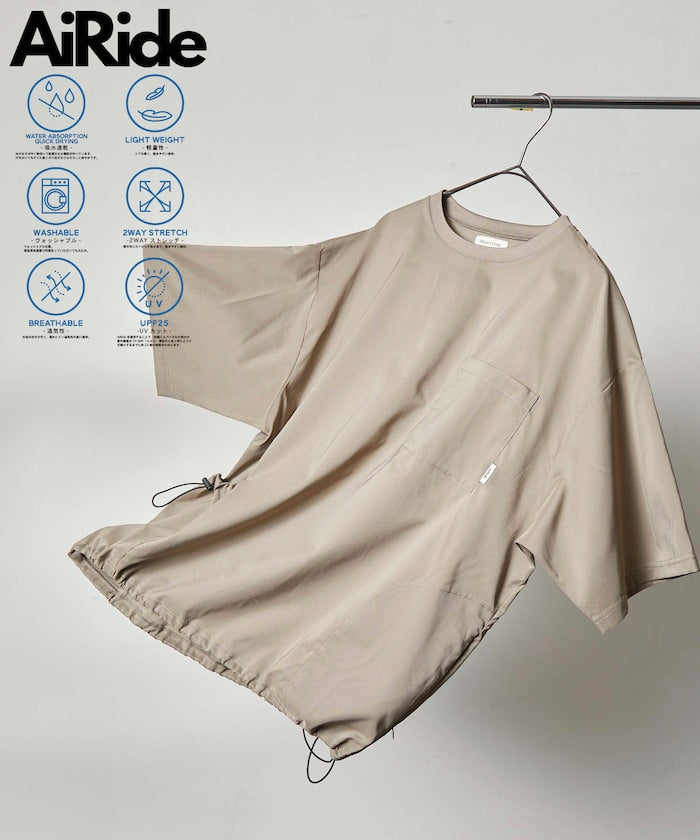 本單品採用具有透氣性和彈性的AiRide功能性面料,具備UPF25及90%以上的紫外線防護率,同時兼具吸水速乾性和輕量性。剪裁為適度寬鬆的休閒合身版型,穿著舒適自在,胸前設有口袋,並附有低調的品牌標籤,右側設有抽繩口袋,左側則有隱藏式拉鍊口袋,提升實用性,是一款無論日常或戶外活動都適用的萬用單品。