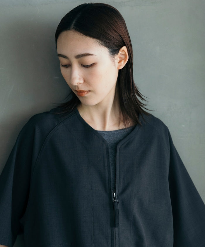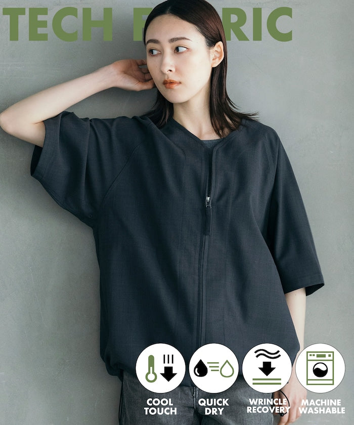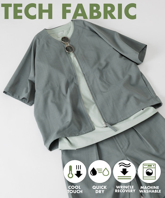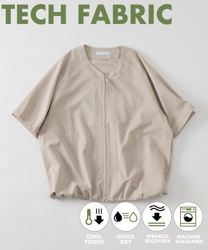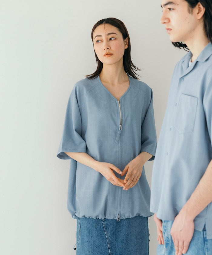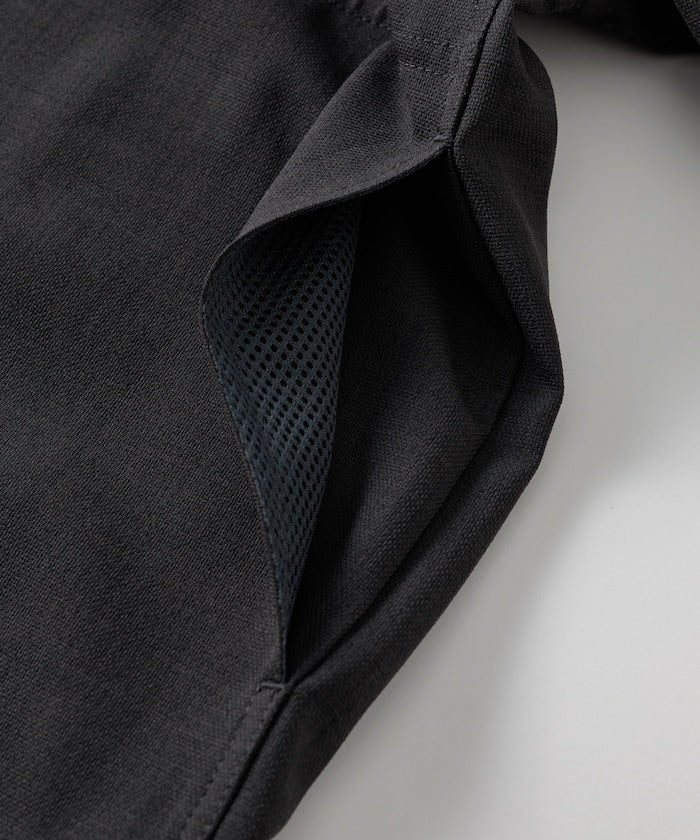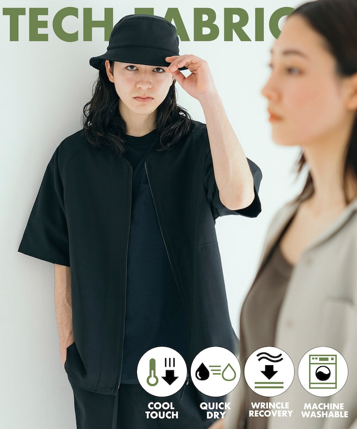 採用具有亞麻風格的聚酯纖維材質,觸感清爽、透氣舒適,擁有吸濕速乾與接觸涼感功能,特別適合春夏穿著,材質經升級處理,減少皺摺並強化布料挺度,剪裁輪廓更立體。兩側設有插手口袋,作為輕便襯衫外套穿著也毫無違和感,下擺有可調節的抽繩設計,並採用雙向開合拉鍊,可依造型自由變化輪廓,短版、寬鬆剪裁融合本季潮流,營造出輕鬆自在的穿搭氛圍。