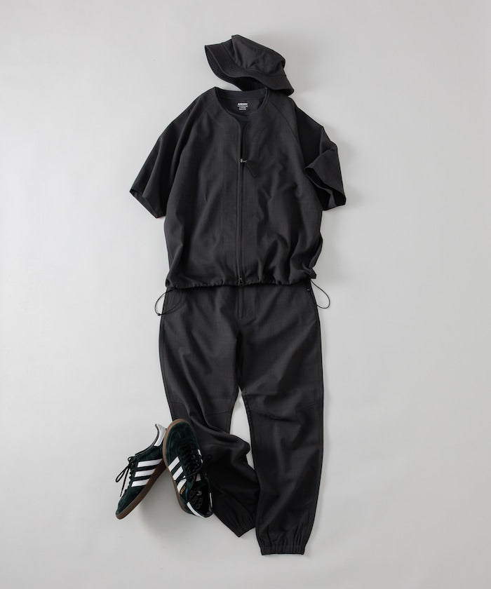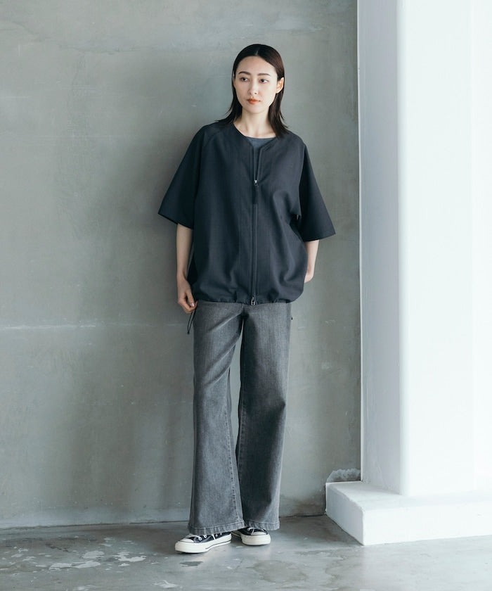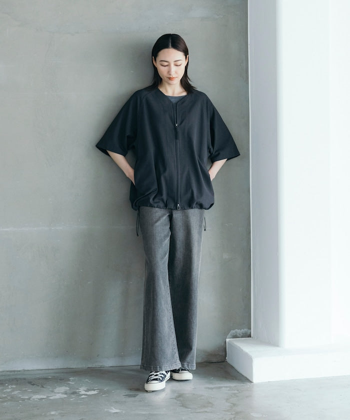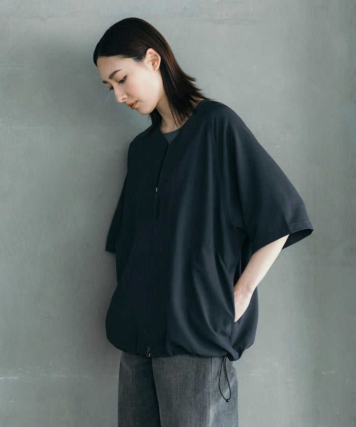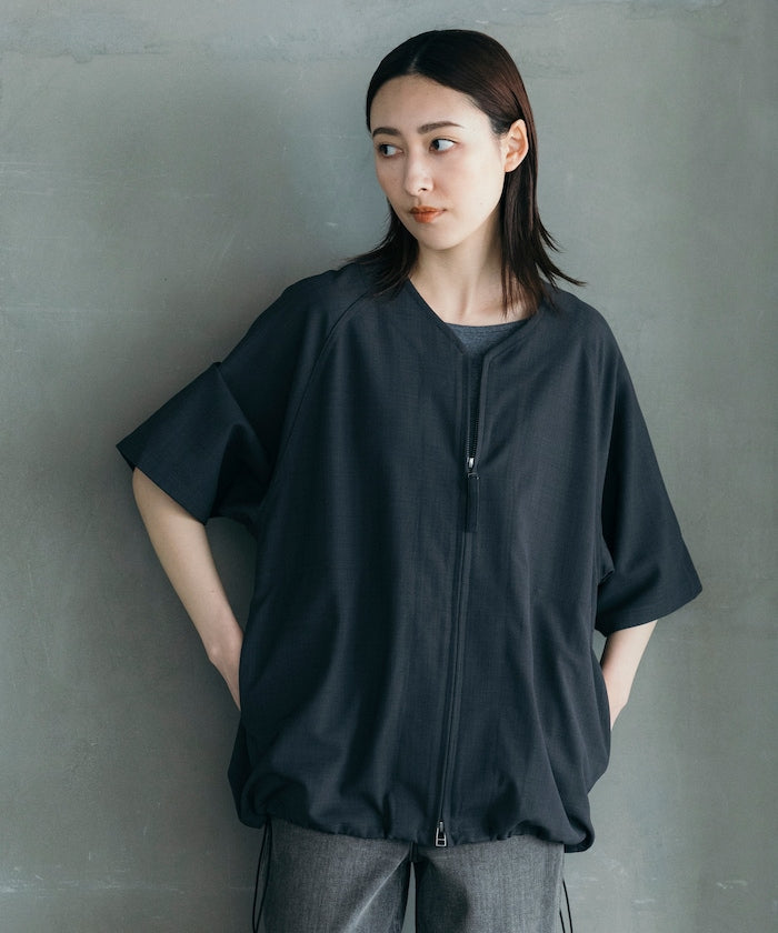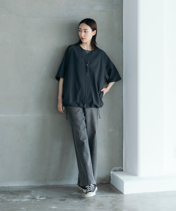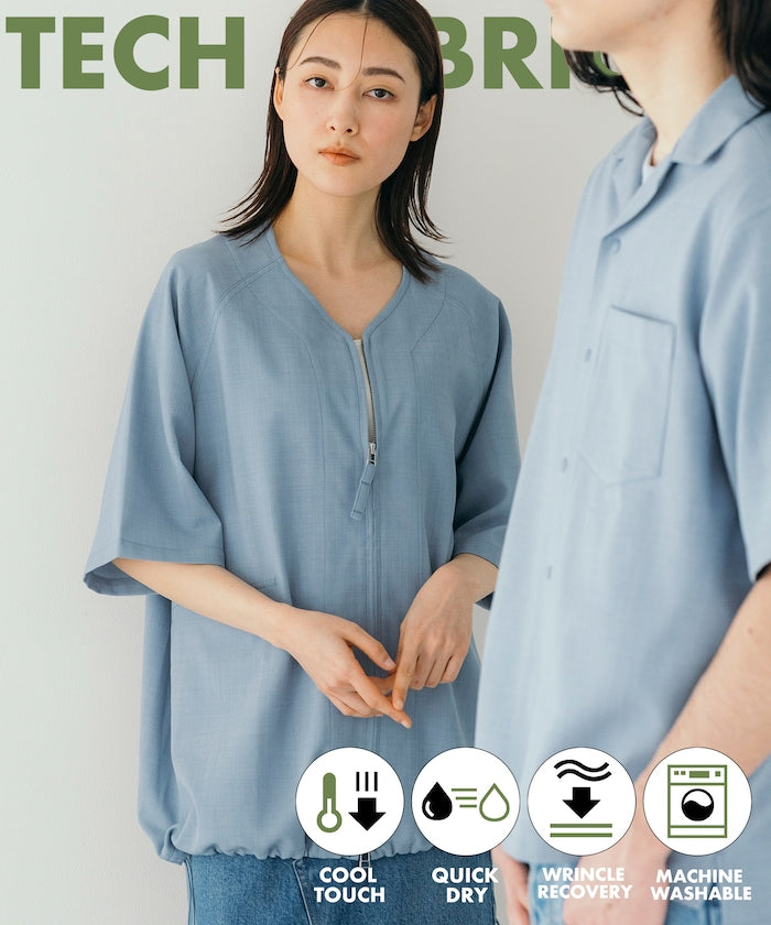 採用具有亞麻風格的聚酯纖維材質,觸感清爽、透氣舒適,擁有吸濕速乾與接觸涼感功能,特別適合春夏穿著,材質經升級處理,減少皺摺並強化布料挺度,剪裁輪廓更立體。兩側設有插手口袋,作為輕便襯衫外套穿著也毫無違和感,下擺有可調節的抽繩設計,並採用雙向開合拉鍊,可依造型自由變化輪廓,短版、寬鬆剪裁融合本季潮流,營造出輕鬆自在的穿搭氛圍。