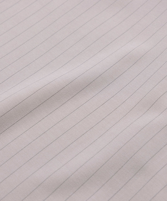 採用彷彿亞麻質感的「Reflax」機能性面料,帶有自然的紋理與清爽的觸感,材質擁有防皺易打理的機能性,透氣不黏膚,帶來涼爽舒適的穿著體驗,另外具備吸水速乾、抗UV、接觸冷感等多重功能,另外布料具有彈性,活動自如、無拘無束,是兼具機能與時尚的理想夏季單品。以條紋設計搭配同色系色調呈現,低調而有層次,讓穿搭更容易上手,整體風格清新洗鍊,寬鬆版型設計,不論正式或休閒穿搭皆適合,擁有極高的搭配自由度。