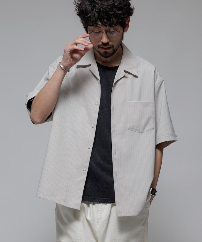 FREAK'S STORE Reflax Functional Fabric Relaxed Fit Striped Open Collar Shirt 機能條紋短袖襯衫
