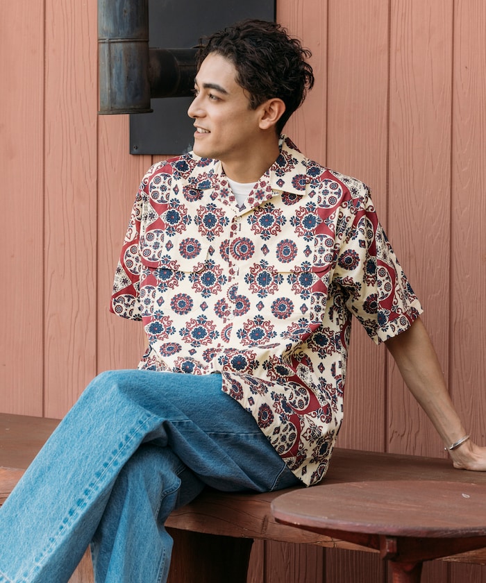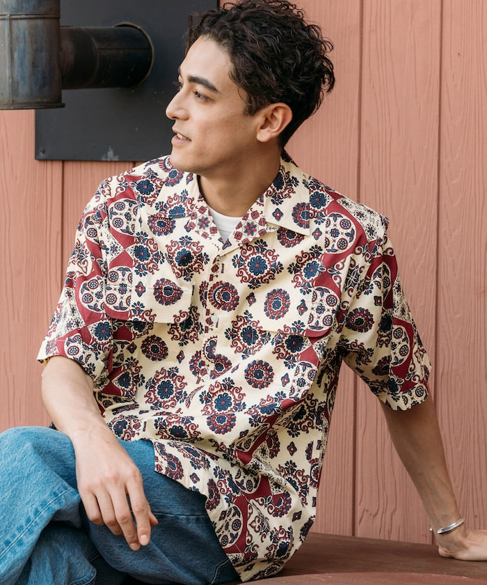 FREAK'S STORE Relaxed fit Batik print open collar shirt/ Small pattern 印花短袖襯衫