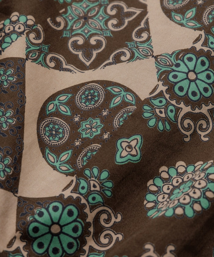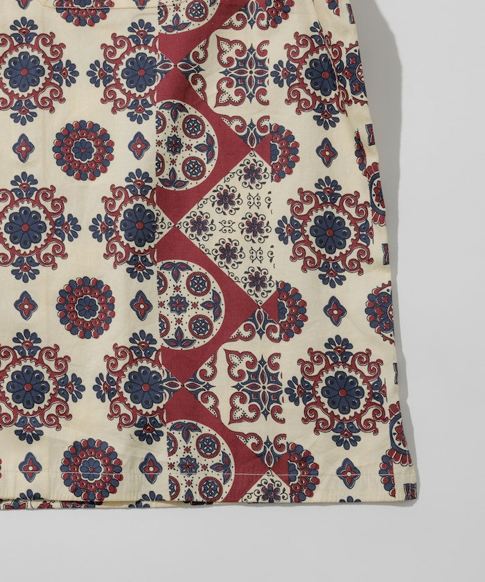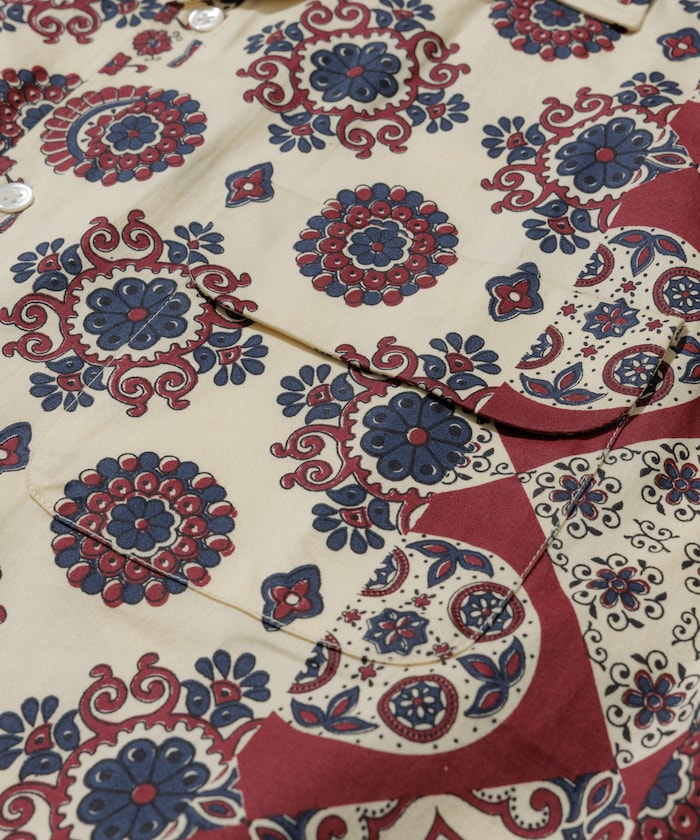 採用來自印度齋浦爾面料工廠的 Somani fabrics 布料,透過印度獨特的技法製作印花,根據色彩的濃淡細緻調整手法,打造柔和親膚、質感講究的面料,圖案為 FREAK'S STORE 原創設計,胸前口袋為翻蓋設計,營造出復古襯衫的氛圍,鈕扣採用天然貝殼扣,增添整體質感。