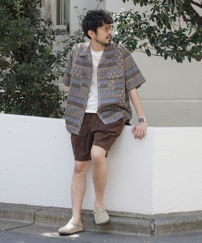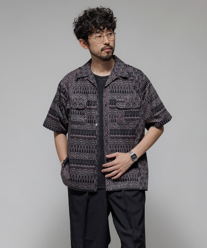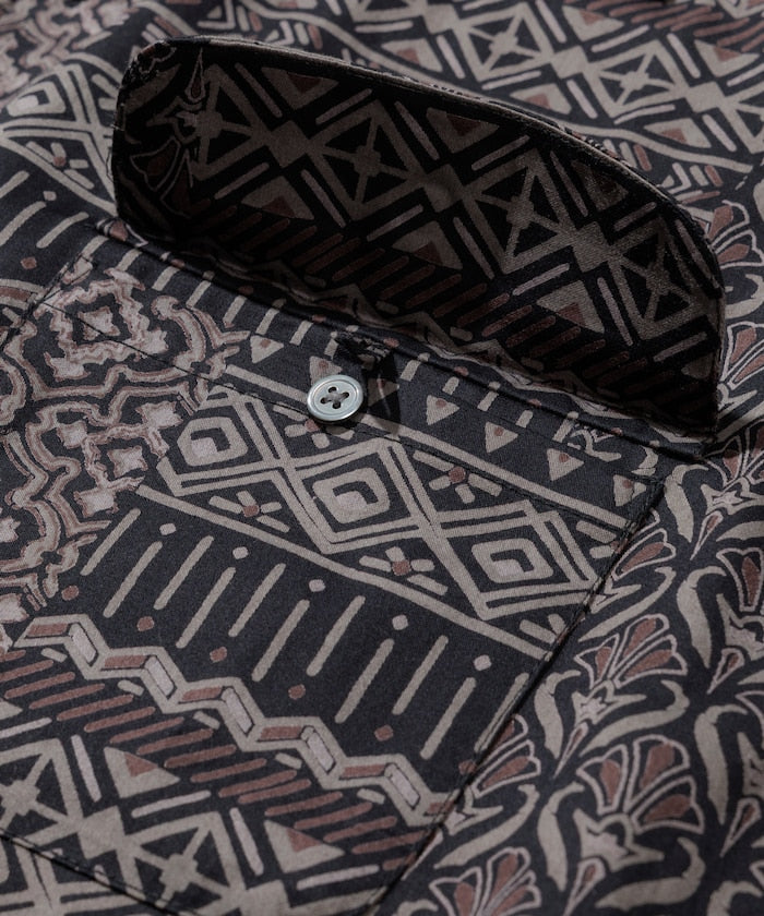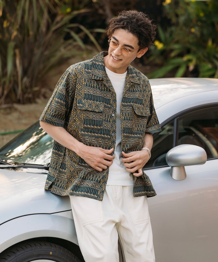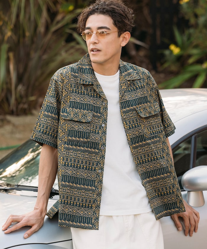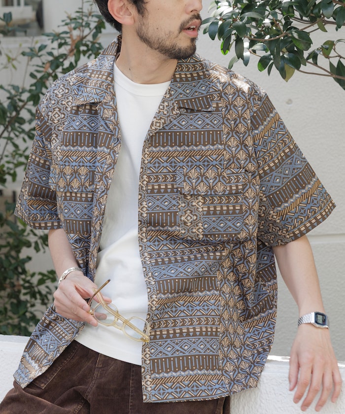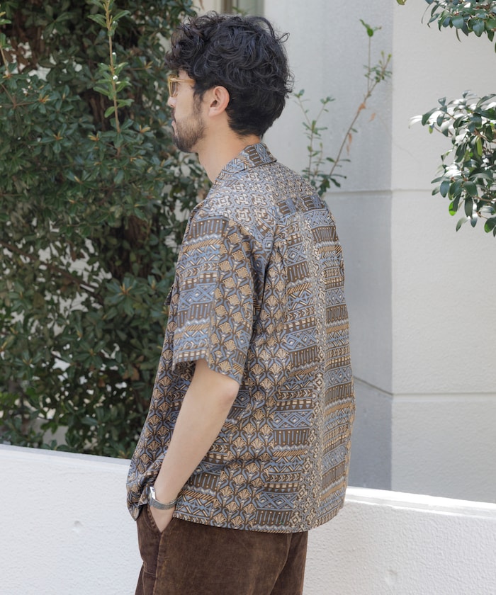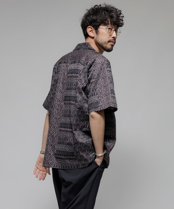 FREAK'S STORE Relaxed Fit Batik Print Open Collar Shirt/African Pattern 印花短袖襯衫