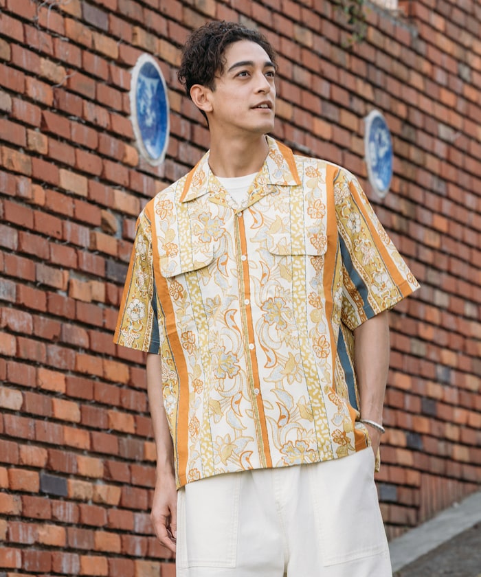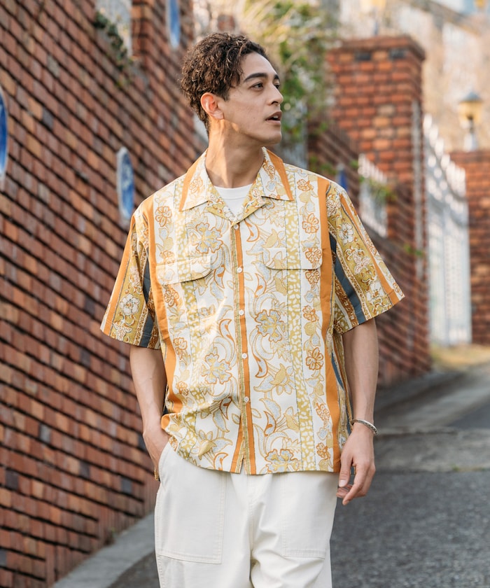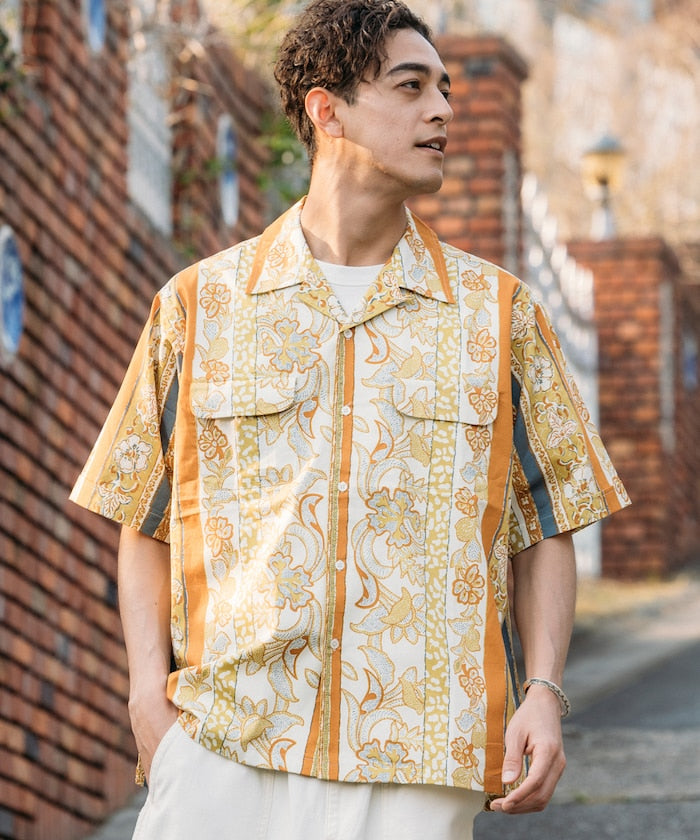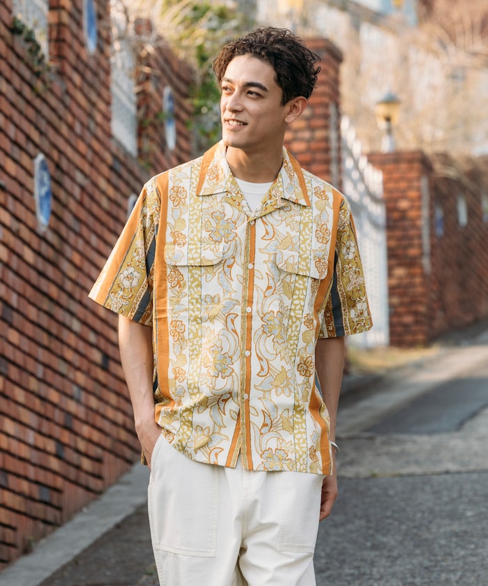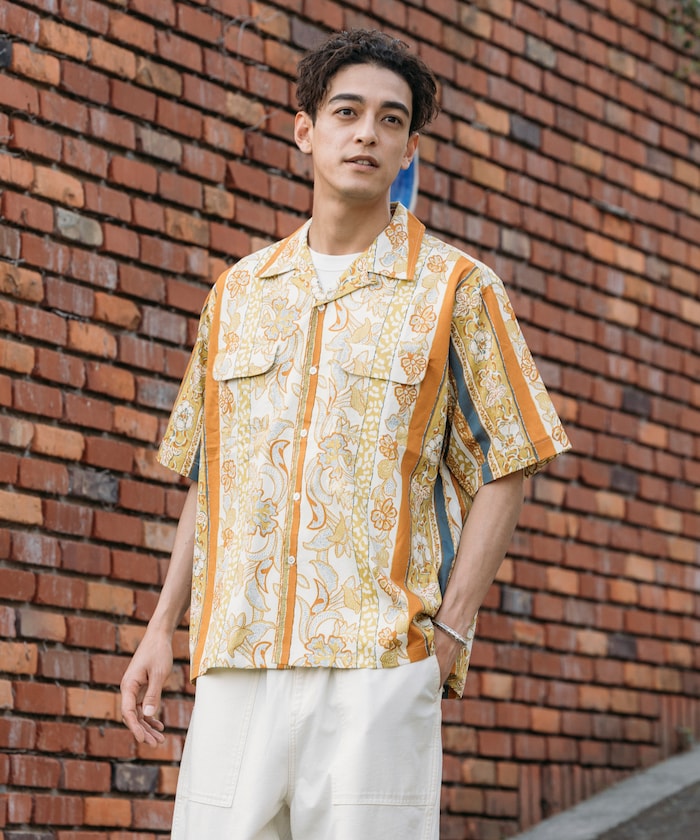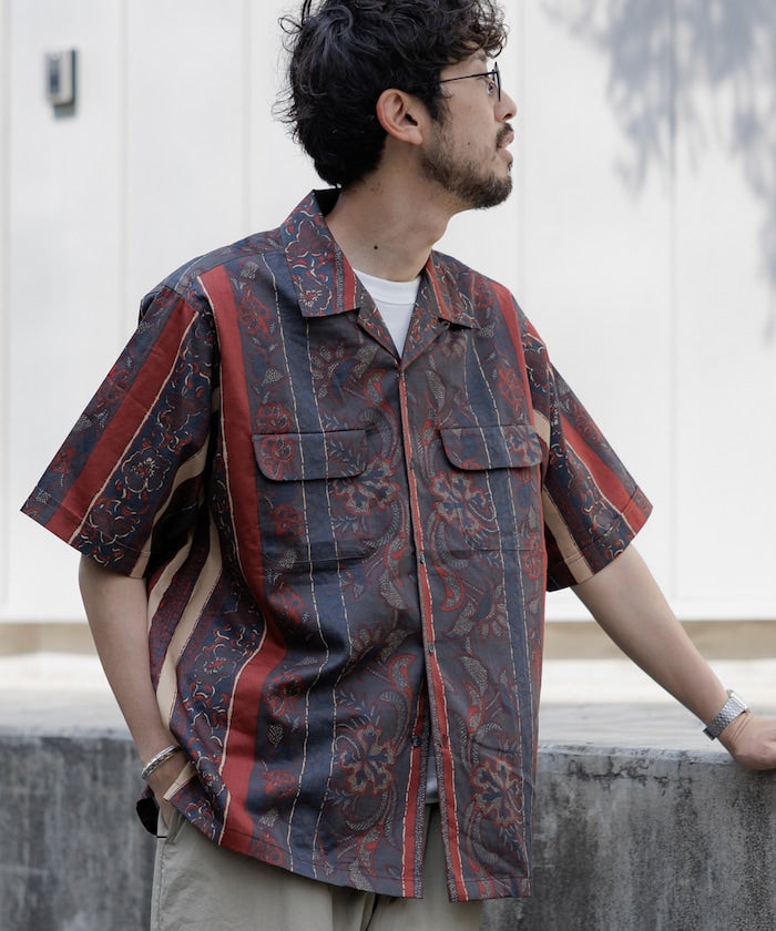 FREAK'S STORE Relaxed Fit Batik Print Open Collar Shirt/Floral 印花短袖襯衫