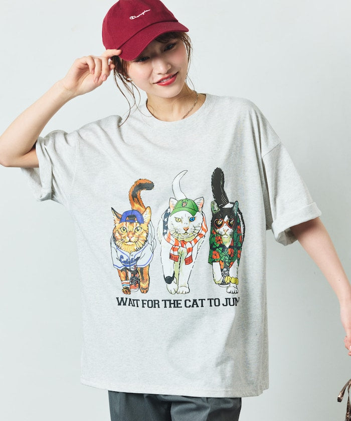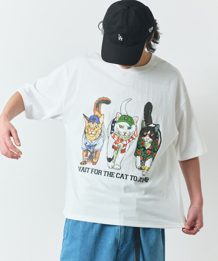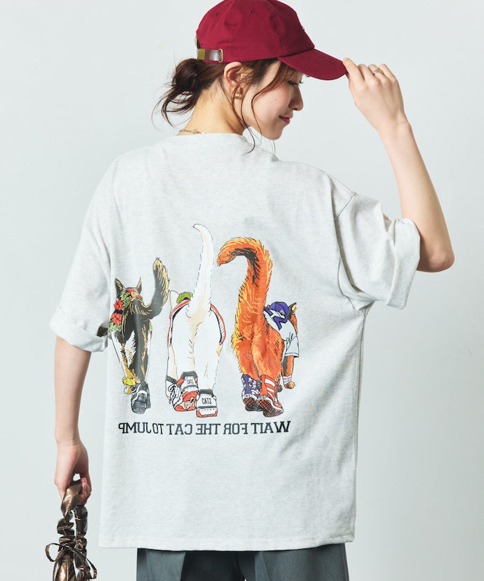 FREAK'S STORE Relaxed fit double-sided print crew neck T-shirt / Three Cats 印花T恤
