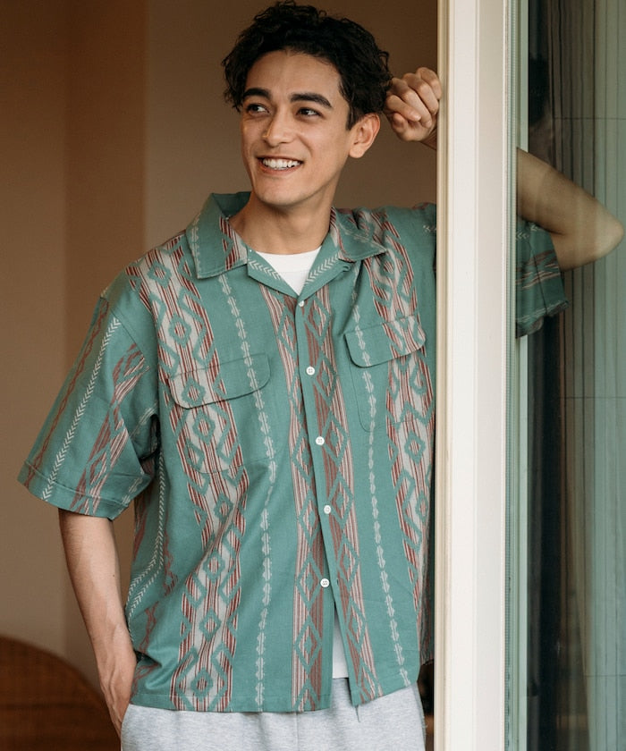 FREAK'S STORE Relaxed fit Ikat jacquard open collar 寬版印花短袖襯衫