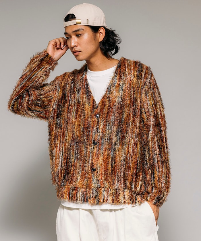 採用長毛絨針織材質製成的多色條紋開襟衫,設計具有強烈的視覺衝擊力與流行感,極具吸引力,適度的休閒寬鬆版型,營造自然隨性的穿搭氛圍,配色鮮明,能成為穿搭中的亮點主角,是一款從休閒風到街頭風皆能輕鬆駕馭的百搭單品。