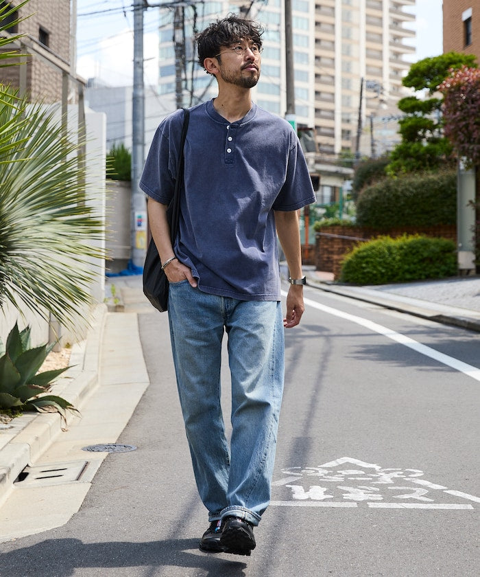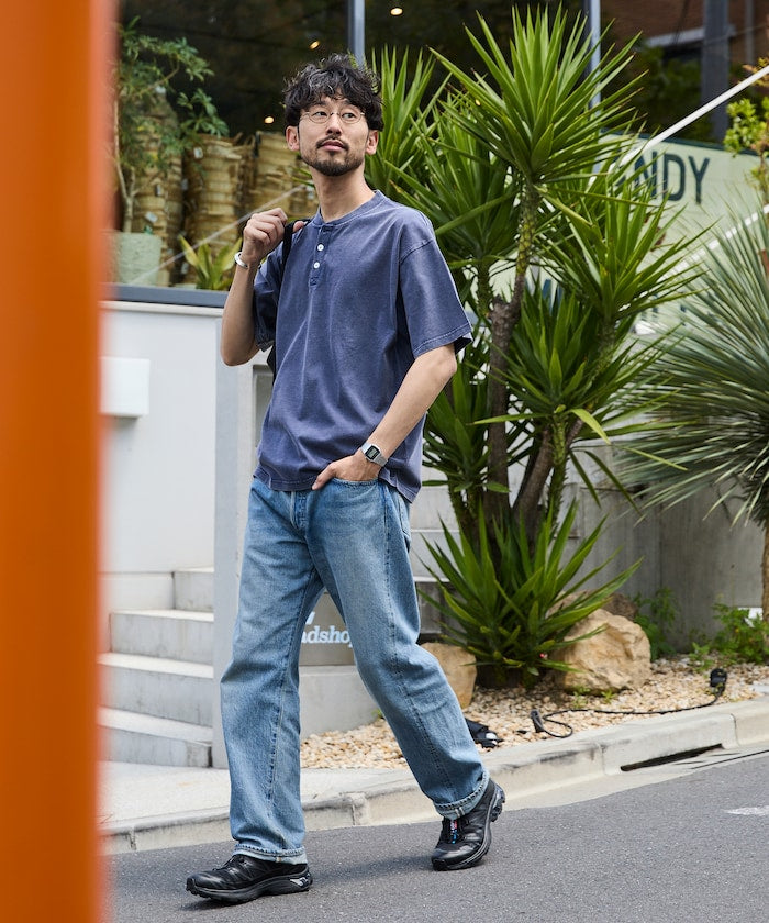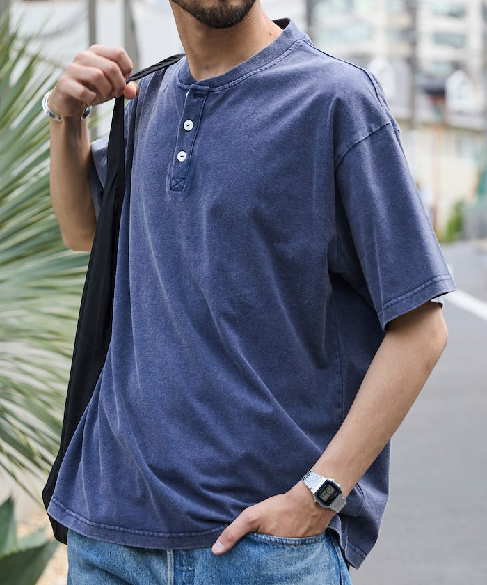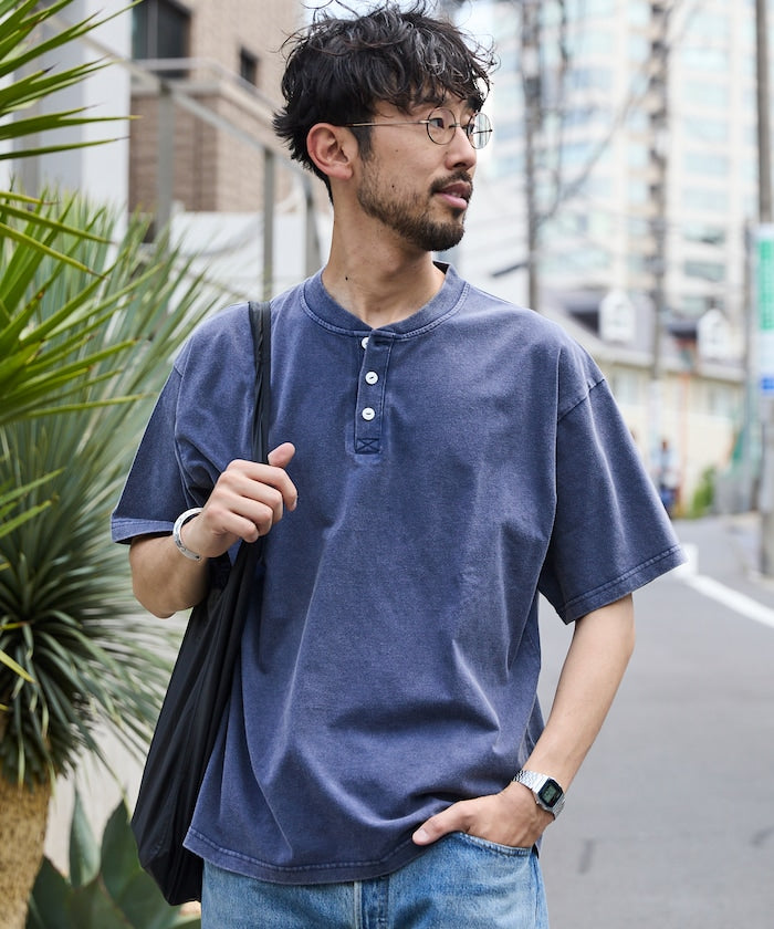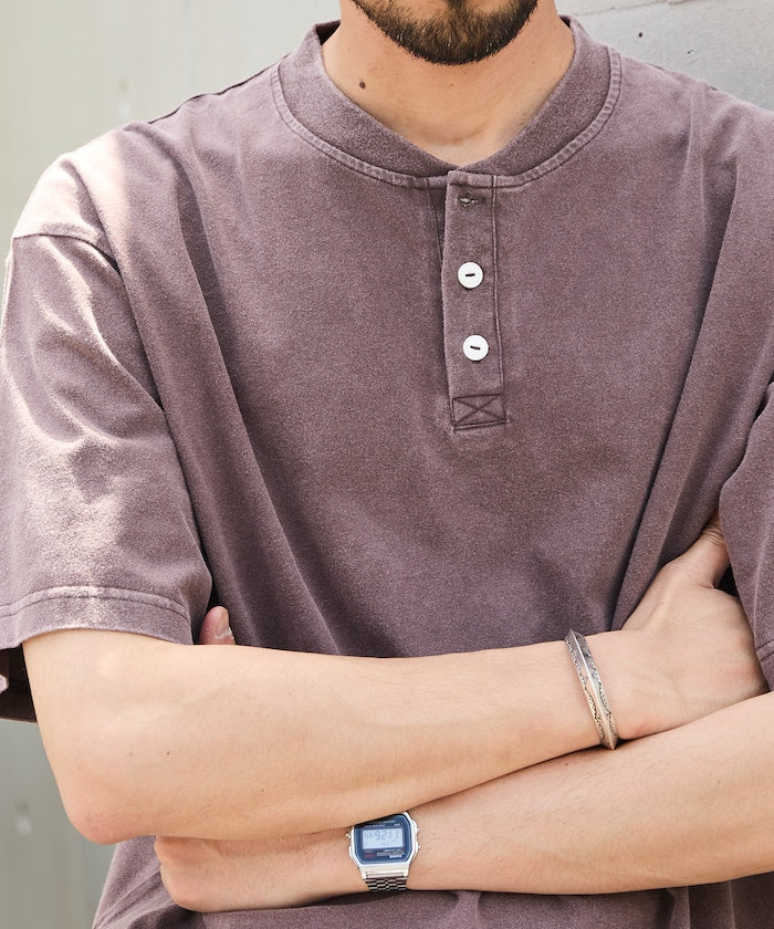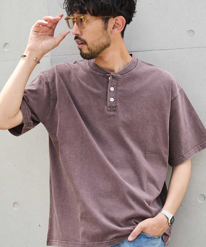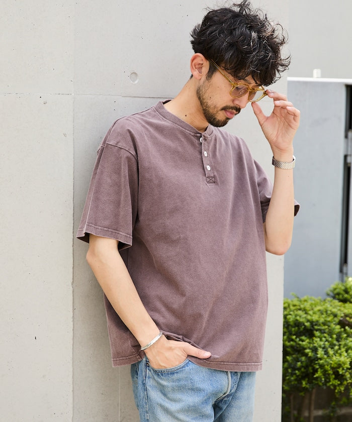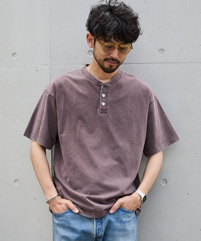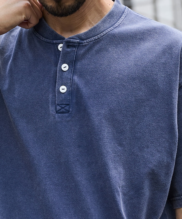 FREAK'S STORE Relaxed fit powdered Henley short sleeve T-shirt 寬版亨利領短袖T恤