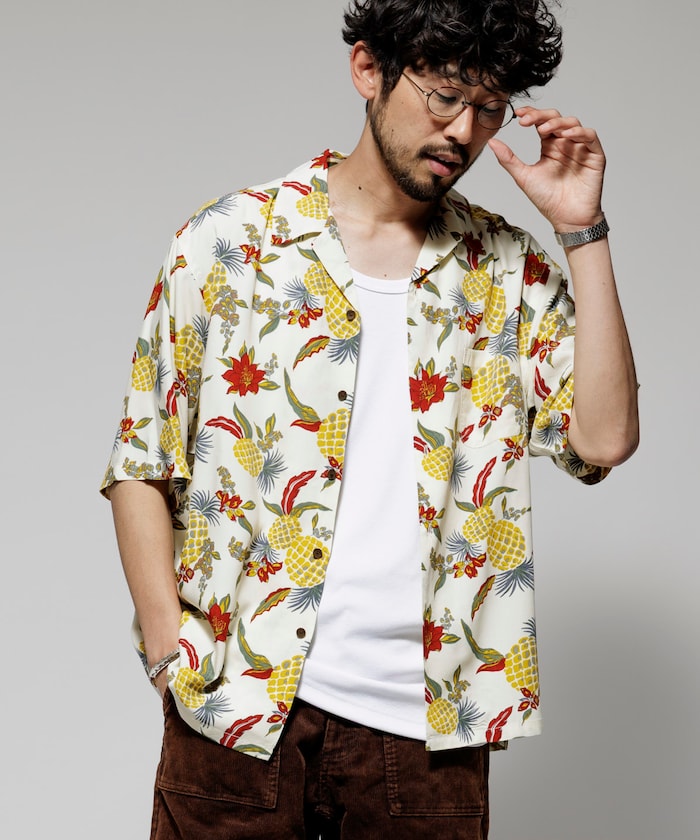 FREAK'S STORE Relaxed fit washable Nylon open collar aloha shirt 短袖夏威夷襯衫