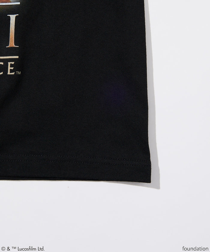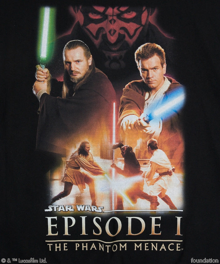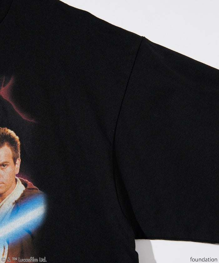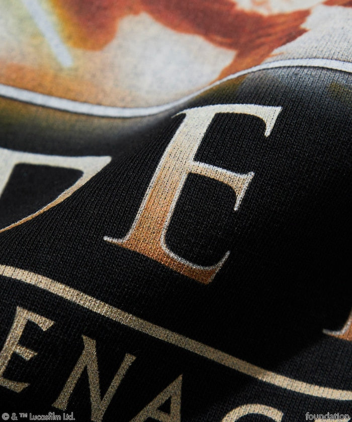 以《星際大戰首部曲:威脅潛伏》為主題設計的T恤,正面印有 Qui-Gon Jinn 與 Obi-Wan 的英姿,搭配決戰場景與標誌性標題Logo,重現史詩般的瞬間,背面則印上持雙刃光劍的 Darth Maul 圖像,視覺衝擊力十足。採用7.1盎司適中厚度的面料,手感扎實、穿起來有型,高領設計與寬大袖口,打造出略微寬鬆的復古街頭感,版型不易變形,越洗越有風味與質感。