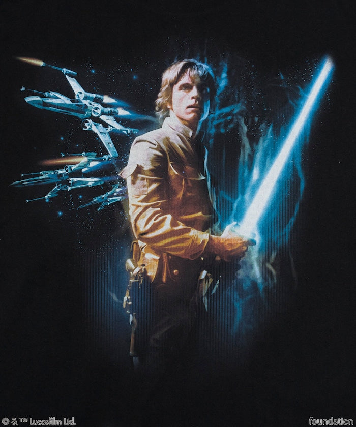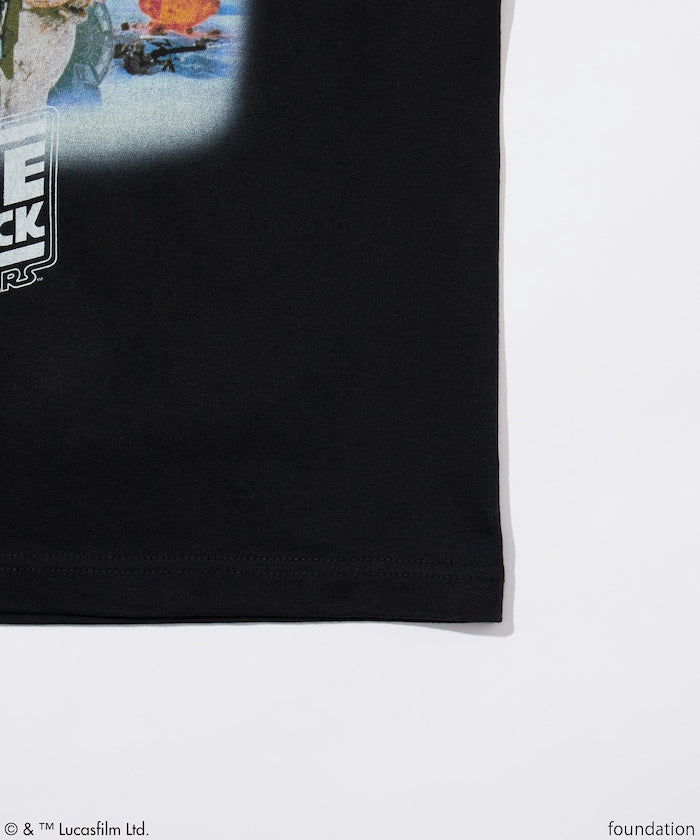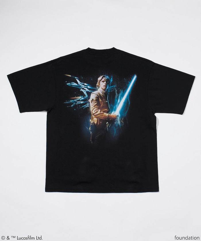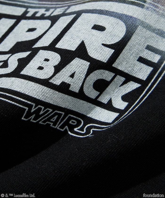 以《星際大戰:帝國大反擊》為主題設計的T恤,正面印有經典日本版海報視覺圖像,充滿懷舊氛圍與收藏價值,背面則為持藍色光劍的路克·天行者,展現角色與場景特色,採用7.1盎司適中厚度的面料,手感扎實、穿起來有型,高領設計與寬大袖口,打造出略微寬鬆的復古街頭感,版型不易變形,越洗越有風味與質感。