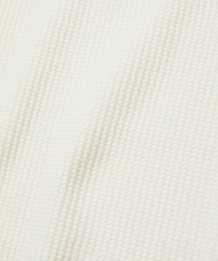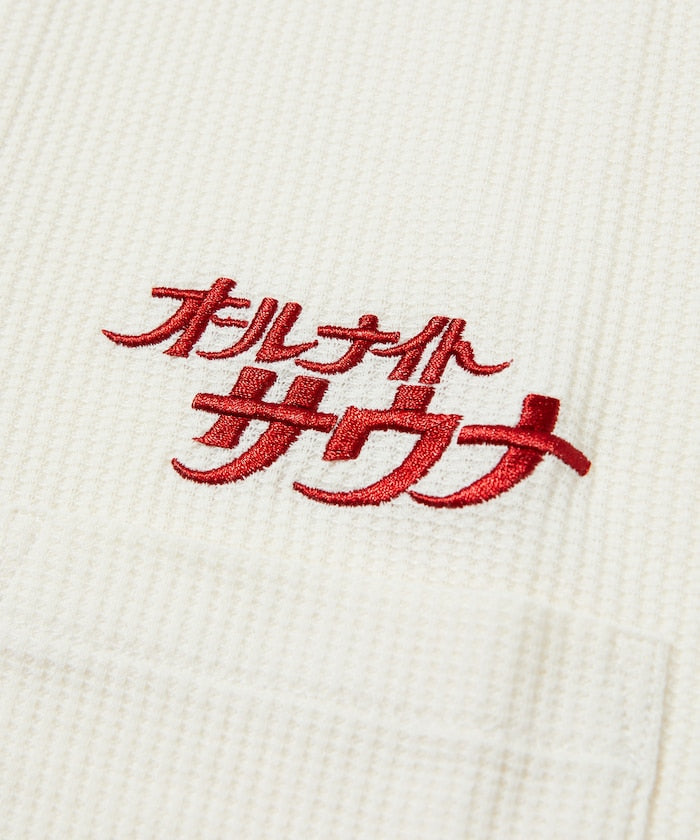 FREAK'S STORE x SAUVENIR聯名的限定單品,以 SAUVENIR 的招牌標誌刺繡為亮點,靈感來自膠囊旅館或大型公共澡堂常見的館內服,打造出一套風格鮮明的套裝。使用蜂巢狀織紋材質,即使出汗,也不會感到黏膩,保持舒適清爽,親膚材質,也非常推薦作為家居服穿著,領口設計非一般的圓領,而是帶有質感的亨利領,更具細節與特色,腰間附有掛勾設計,可掛鑰匙,褲頭設有抽繩設計,可根據腰圍進行調整,兼具實用與穿著自由度。