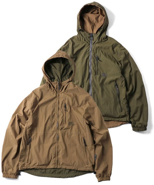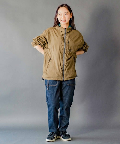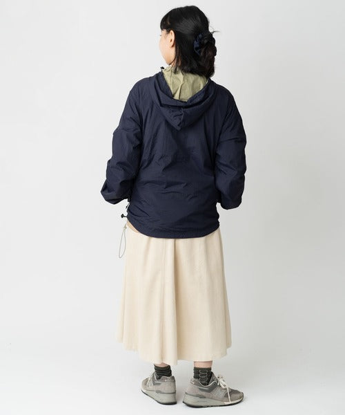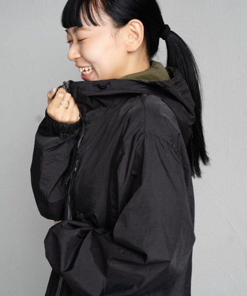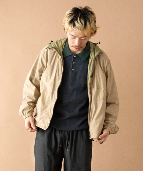 採用堅挺又輕盈的尼龍材質,可雙面穿搭的連帽夾克風衣外套,內裡有防風薄膜,有效提升保暖性,下擺有抽繩設計,能夠自行做調整。可內搭在T恤,也可作為內搭穿在外套內,享受多種風格的穿搭樂趣。此外雙面的設計讓整體造型可依照當日心情自由變換,享受多樣的風格。