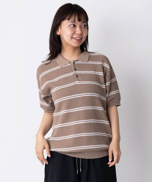 Gym Master High gauge knit striped polo shirt 針織條紋短袖Polo衫
