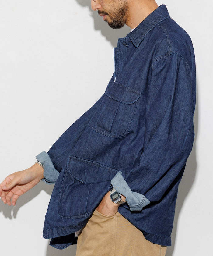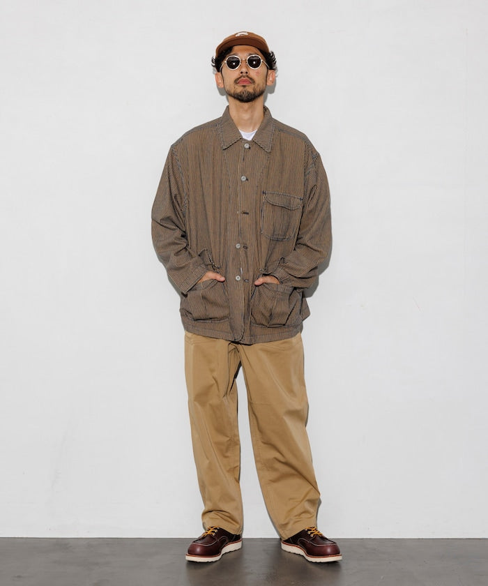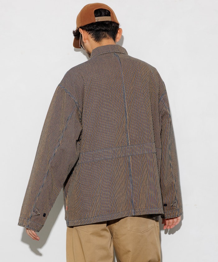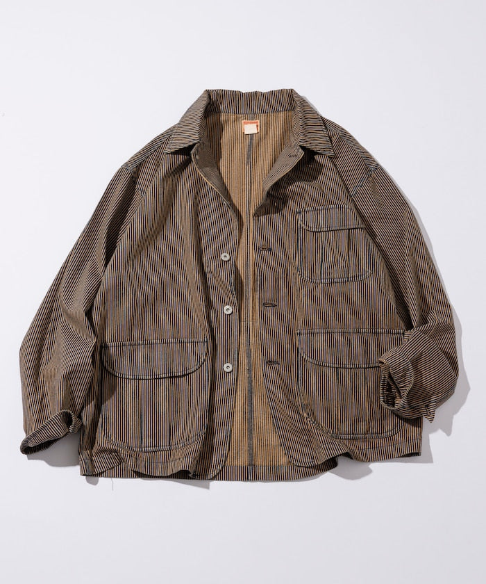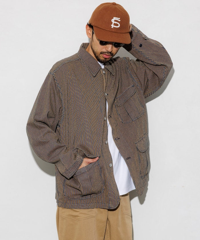 以古著獵裝外套為靈感,重新打造出簡約又具都市感的設計,特色在於口袋配置的平衡感,兼顧實用與造型。條紋款以棕色染製,進一步強調復古氛圍,寬鬆的版型,可輕鬆搭配衛衣或厚針織衫,適合疊穿,是一款四季皆宜的輕便外套,容易融入日常造型,實穿性極高。