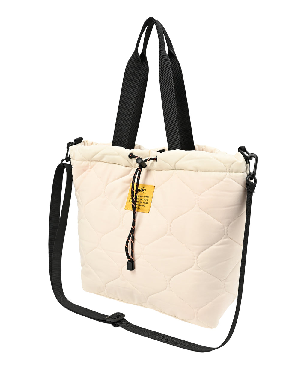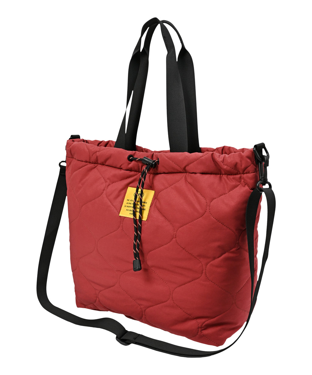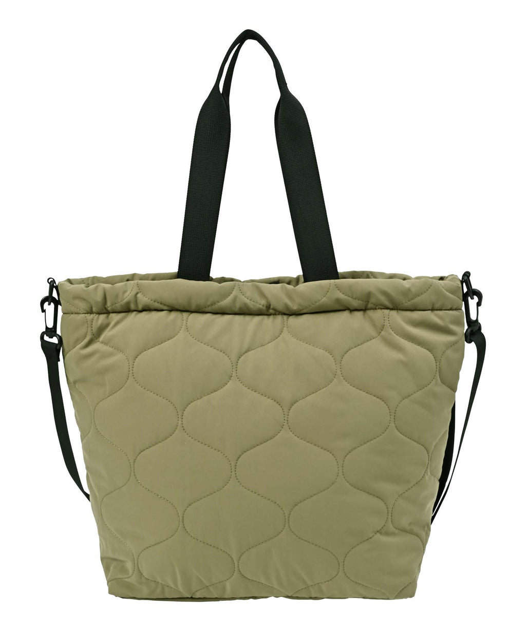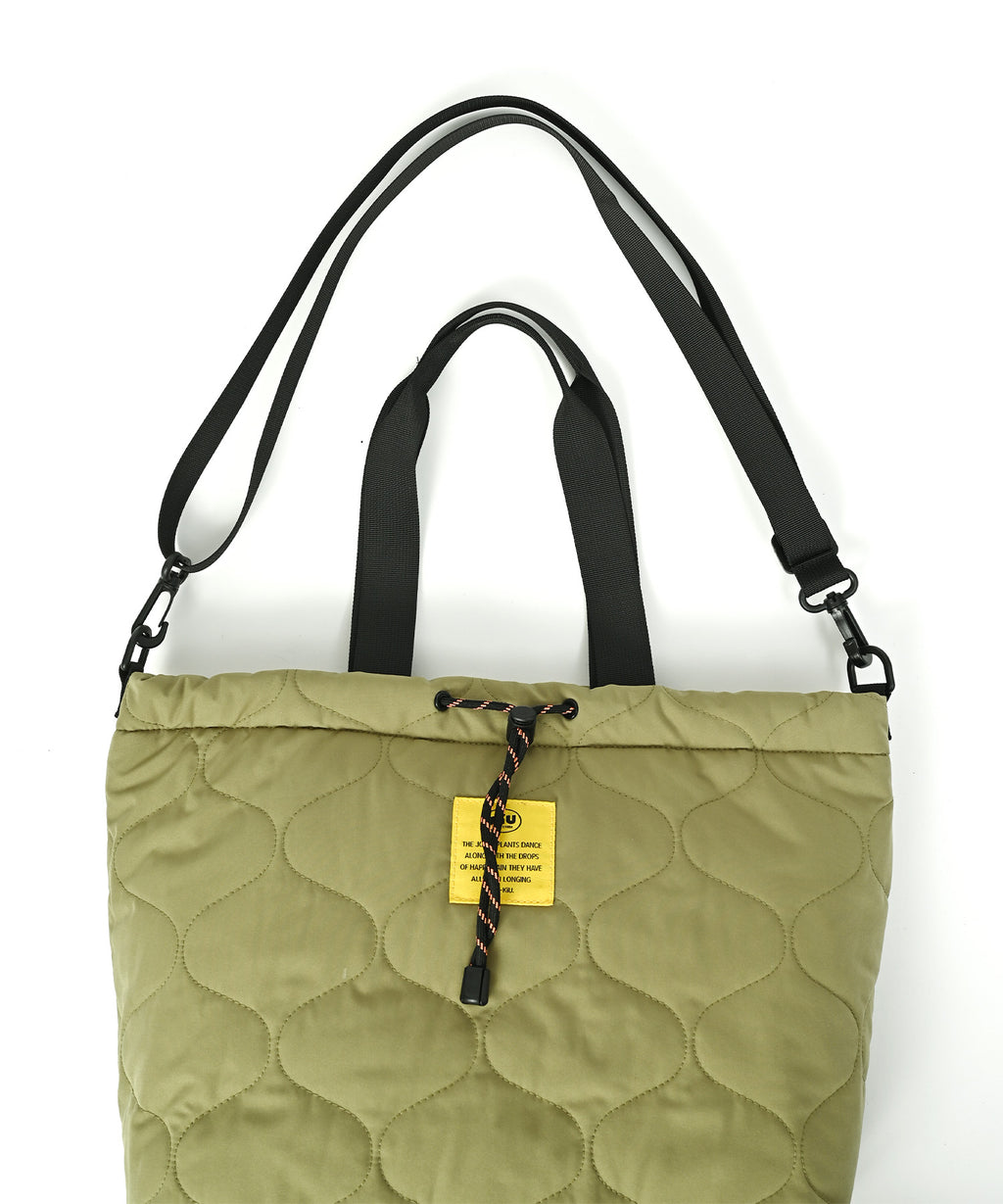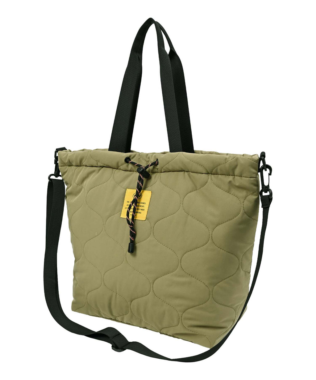 使用防潑水加工的高機能絎縫布料,可肩背或手提的兩用設計,提把長度設計恰到好處,肩背也非常舒適,內部附有 2 個拉鍊口袋,收納分類更方便,開口處有抽繩設計,可自由調整成 束口造型,隨心變換包型,讓日常造型更具玩味。配色選用沉穩大地色系,自然融入秋冬穿搭,內裡則是鮮豔的橘色,呼應工裝元素,不僅時尚有型,還能讓內容物更容易看清、取用更便利。