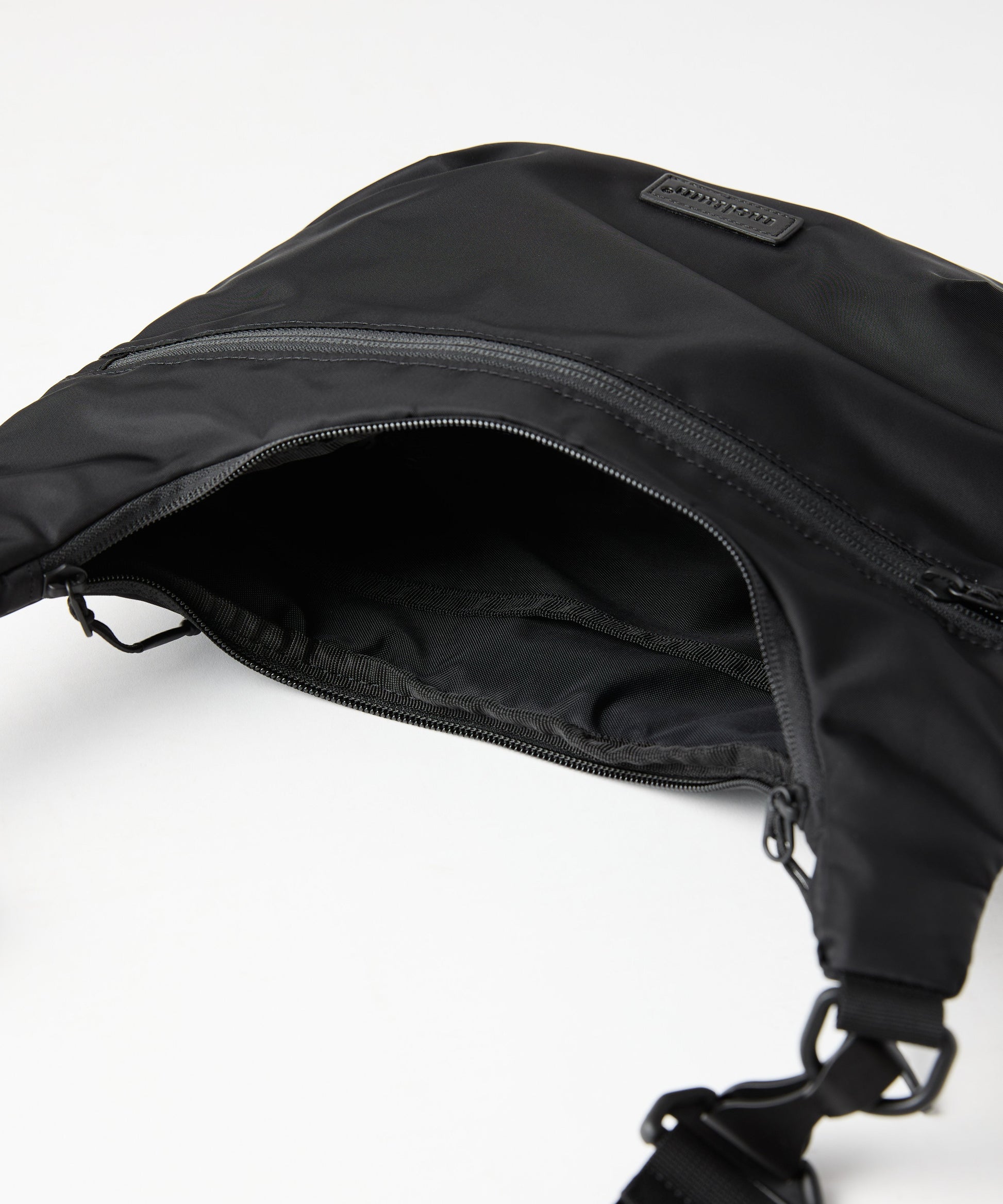 採用順著身形彎曲設計的曲線包身,不僅外型流暢美觀,貼合身體曲線也讓使用更舒適,表面與內裡均具備防潑水加工,選用高品質的 210D 尼龍材質,具備優異的挺度與韌性,表面為質感出眾的尼龍斜紋布,手感細膩,視覺上也帶有高級光澤感。雖然外觀看似簡約,但容量超乎想像,可輕鬆放入長夾、iPad等物品,兼具收納力與設計感,是一款講究細節與機能性兼具的單品,非常適合日常通勤、旅遊或輕便出行使用。