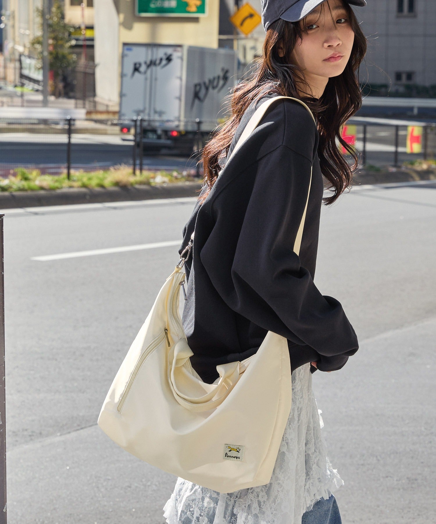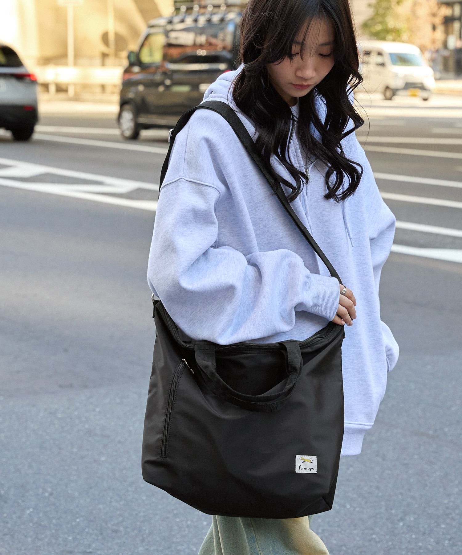 採用輕巧且耐用的聚酯纖維布料,具備雙層結構與適度的硬挺感,兩用設計、手提或肩背都可以,包包設有拉鍊,主空間容量充足,外側設有拉鍊口袋,可方便放置手機、耳機等小物,復古的品牌標籤,在簡約設計中增添小巧思。肩帶可拆卸及調節,可以根據需求輕鬆變換手提或斜背風格。不僅適合日常使用,也非常適合通勤或旅行時攜帶,男女皆可輕鬆穿搭。