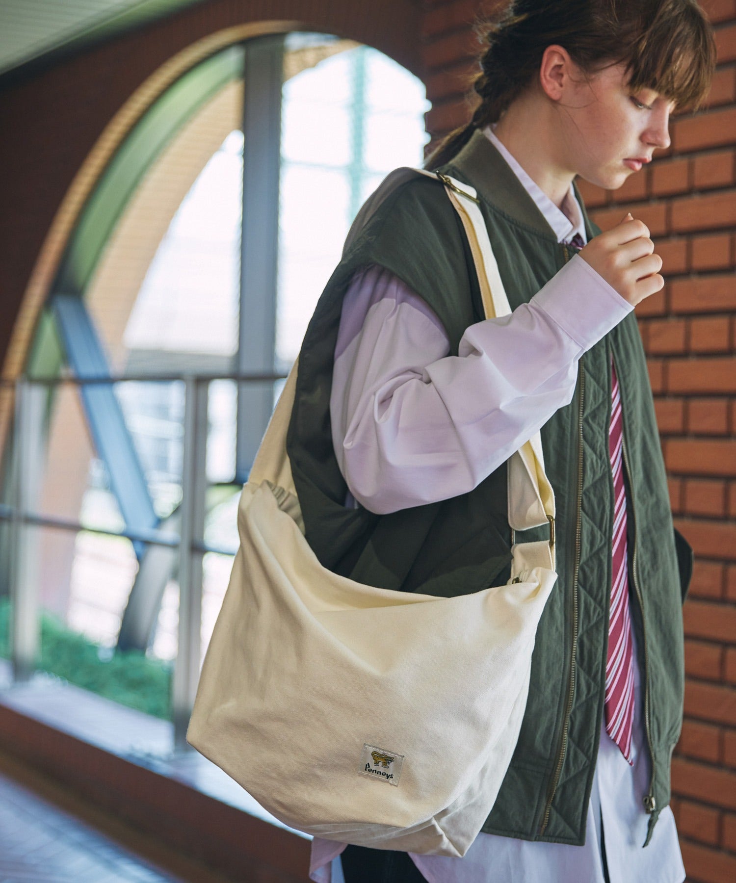 PENNEYS THE FOX & BE A TIGER 復古標籤帆布郵差包