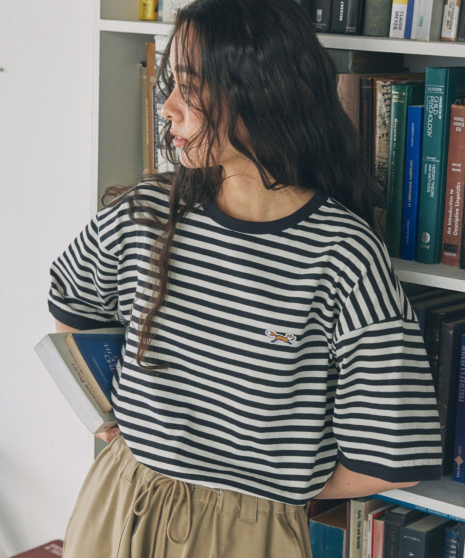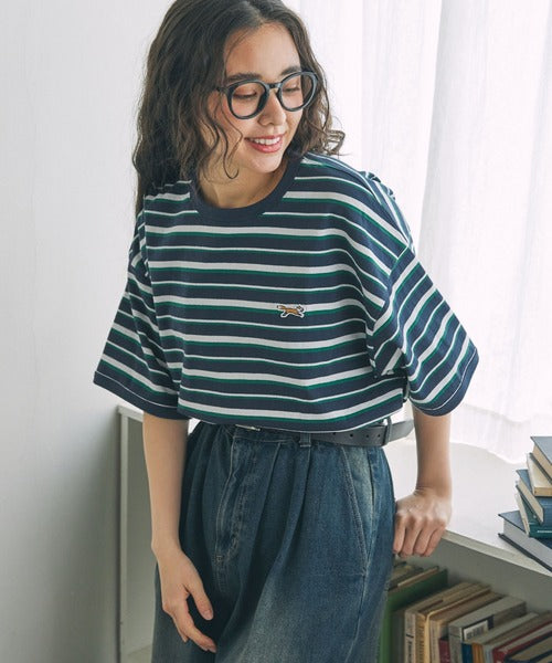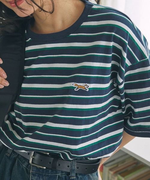 PENNEYS THE FOX logo patch embroidered striped T-shirt 狐狸刺繡LOGO短袖上衣