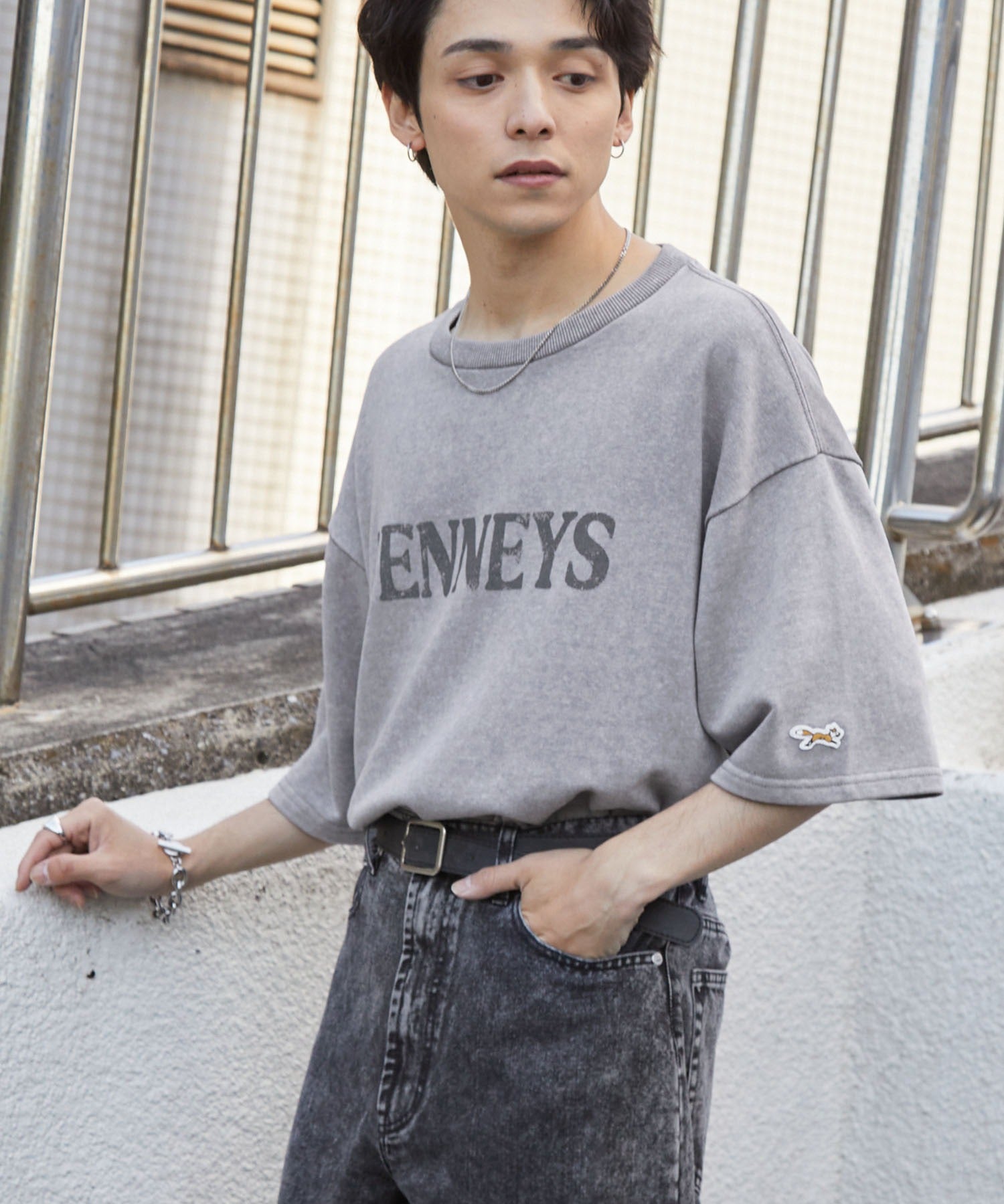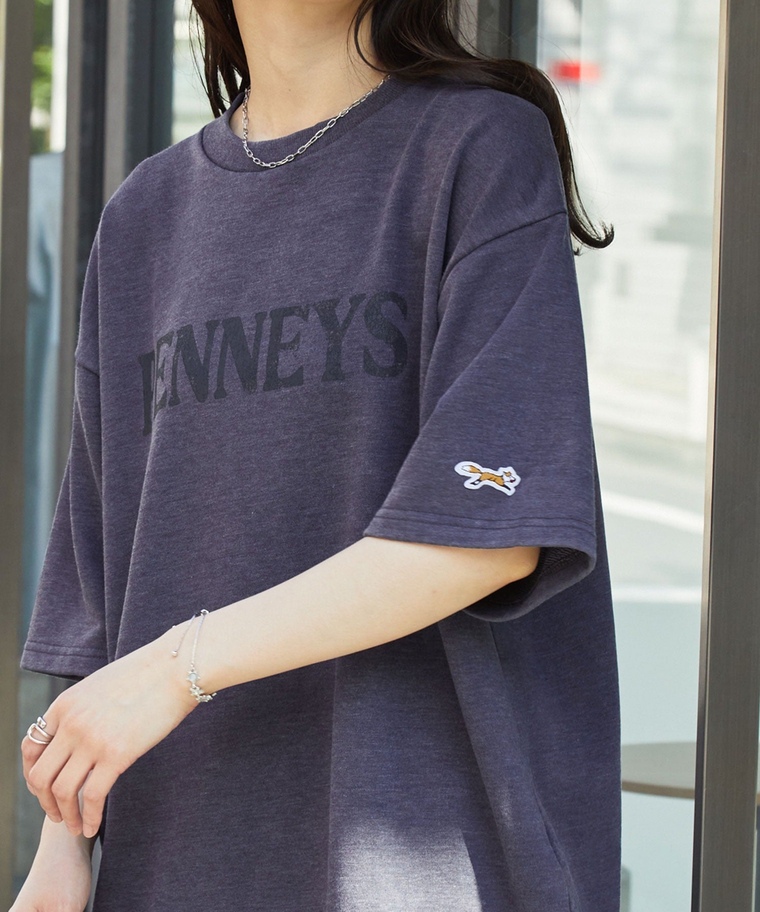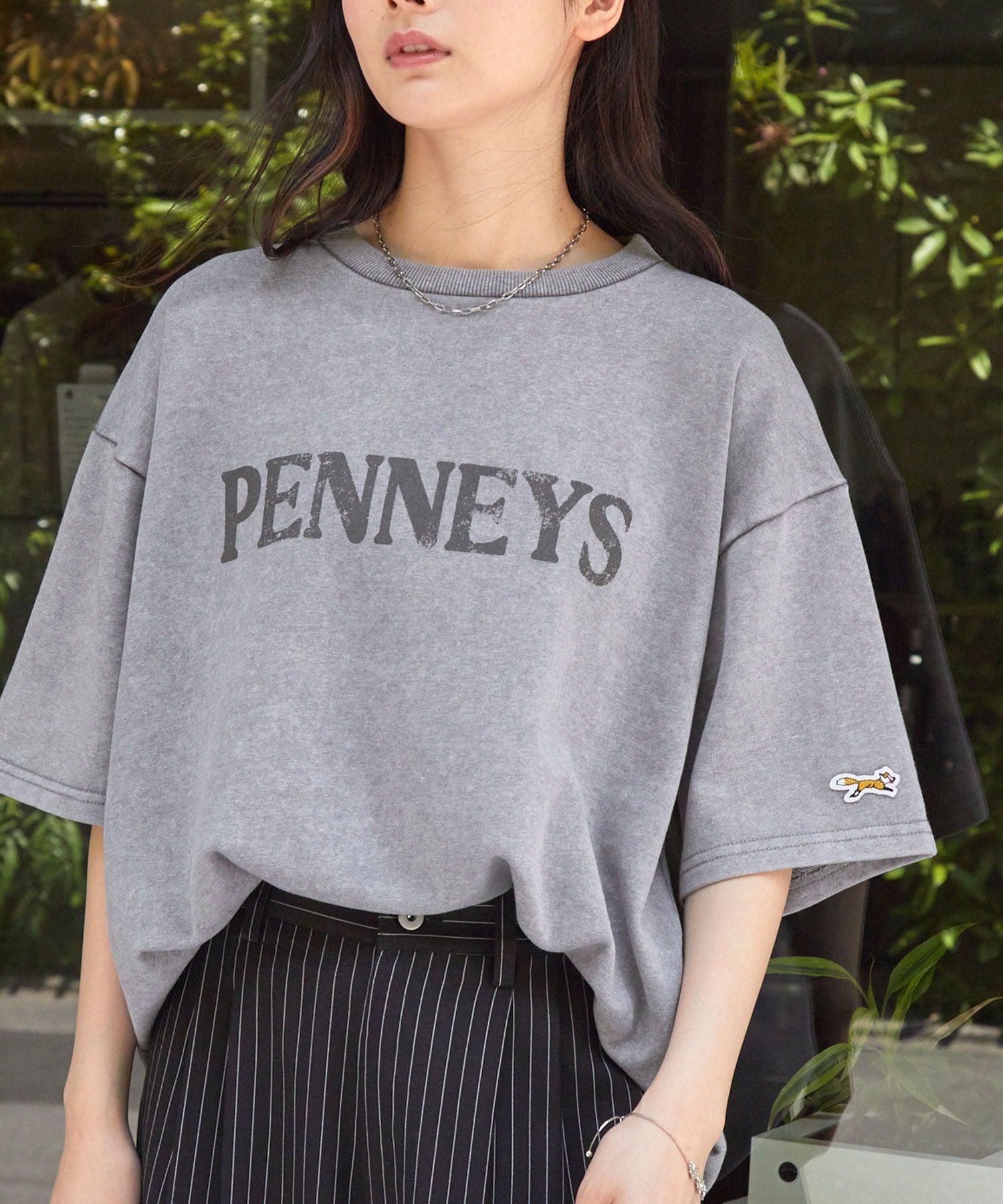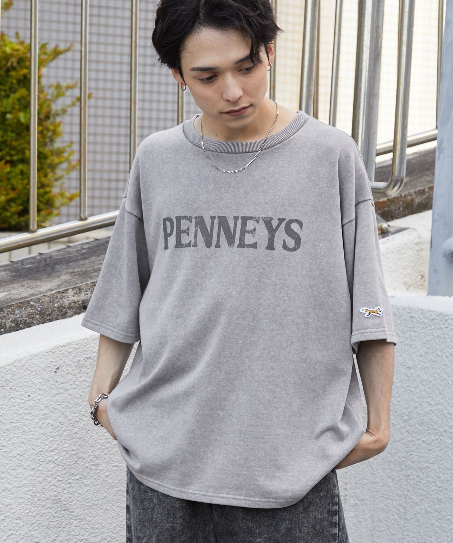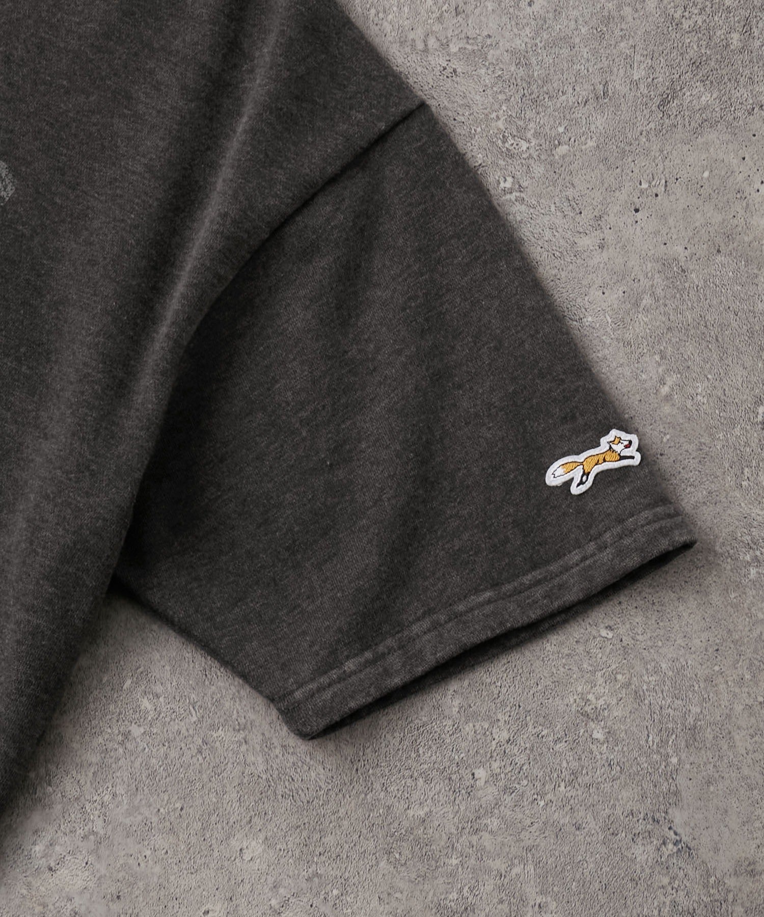 採用高彈性且扎實的布料製成,穿起來舒適親膚,透過特殊處理營造自然褪色效果,呈現出懷舊古著風格的獨特氛圍。左袖飾有狐狸圖案布章刺繍,胸前則印有仿舊風格的復古字樣,寬鬆的版型、男女皆宜的中性設計,輕鬆搭配不費力。