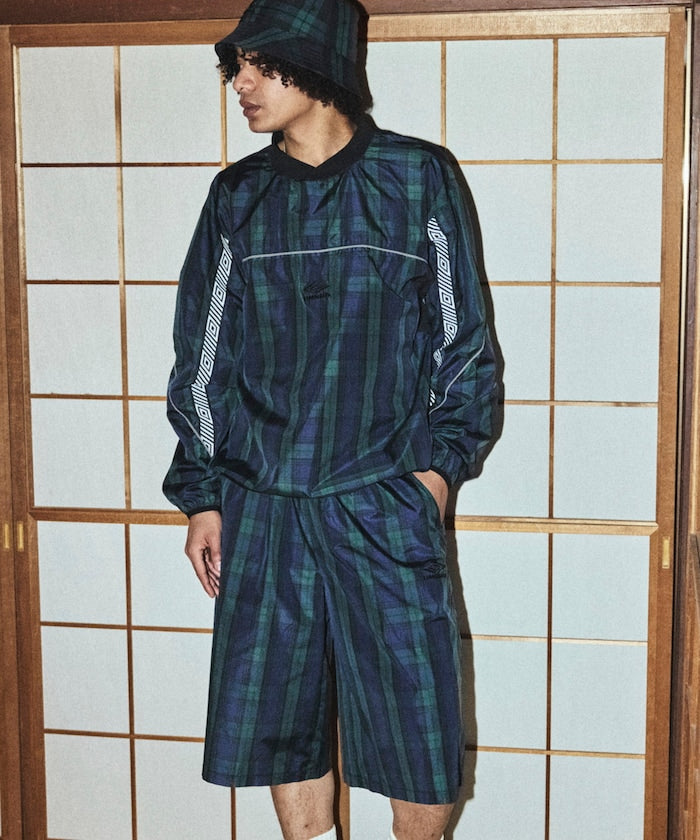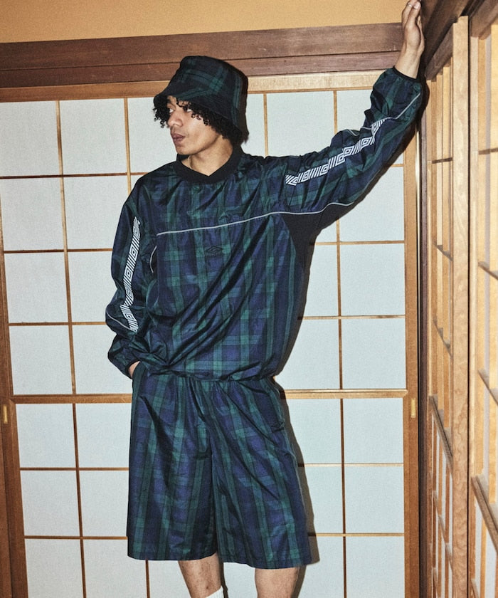 PUBLUX與英國足球用品品牌 UMBRO 聯名設計的限定單品,正面繡有 UMBRO 經典 Logo,全新設計的圖案,讓原本偏古典的風格也能展現出街頭感,採用輕盈的尼龍材質,格紋款則使用聚酯纖維材質,挺度佳且不易變形,寬鬆剪裁設計,展現輕鬆率性的穿搭風格,同時提升活動靈活度,從戶外活動、日常休閒到街頭穿搭皆適用,實穿性極高。