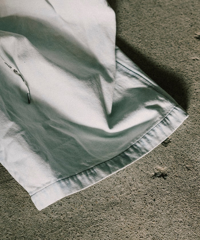 採用厚實感十足的 11.5oz 丹寧布料,經過仿舊水洗與染色處理,營造復古氛圍,以 RED KAP 的代表作 PT-38 褲款為基礎,重新設計為適合夏季的寬鬆剪裁短褲,大幅增加褶皺設計,打造立體寬版輪廓,左側口袋上特別復刻 90 年代丹寧熱潮時期的 RED KAP 專用標籤,細節滿滿,腰部搭配品牌Logo的抽繩設計,方便調整尺寸、穿脫便利。