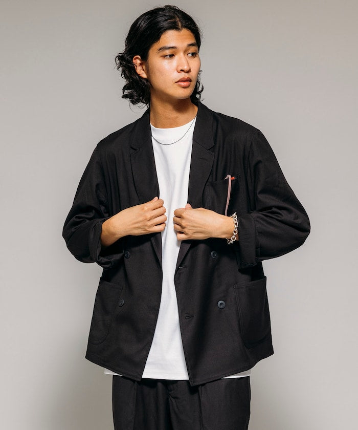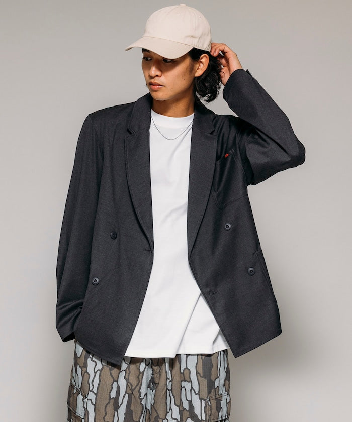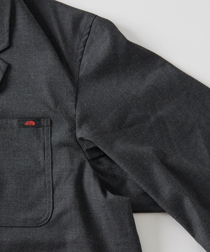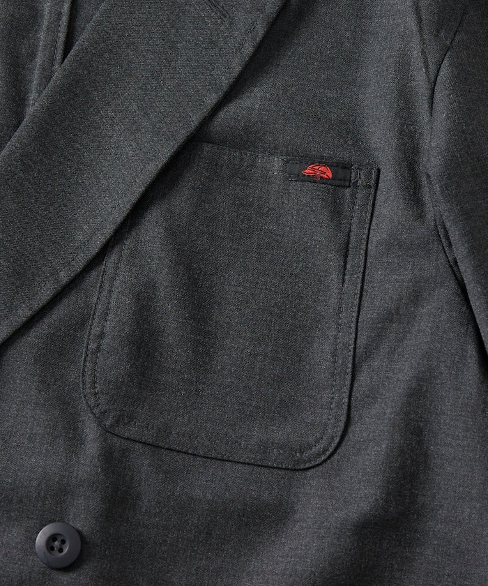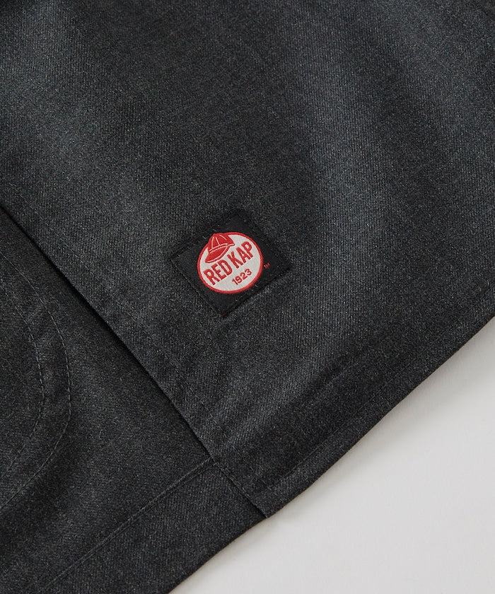 RED KAP 熱門的 TR 套裝系列,調整版型的新作,版型微收窄、衣長略短,營造更俐落洗練的印象,外套採雙排釦設計,同時將口袋改成源自工裝的圓角造型,增添休閒感,不會過於正式,也不會太隨性,呈現恰到好處的平衡感,能應對多種穿搭需求。